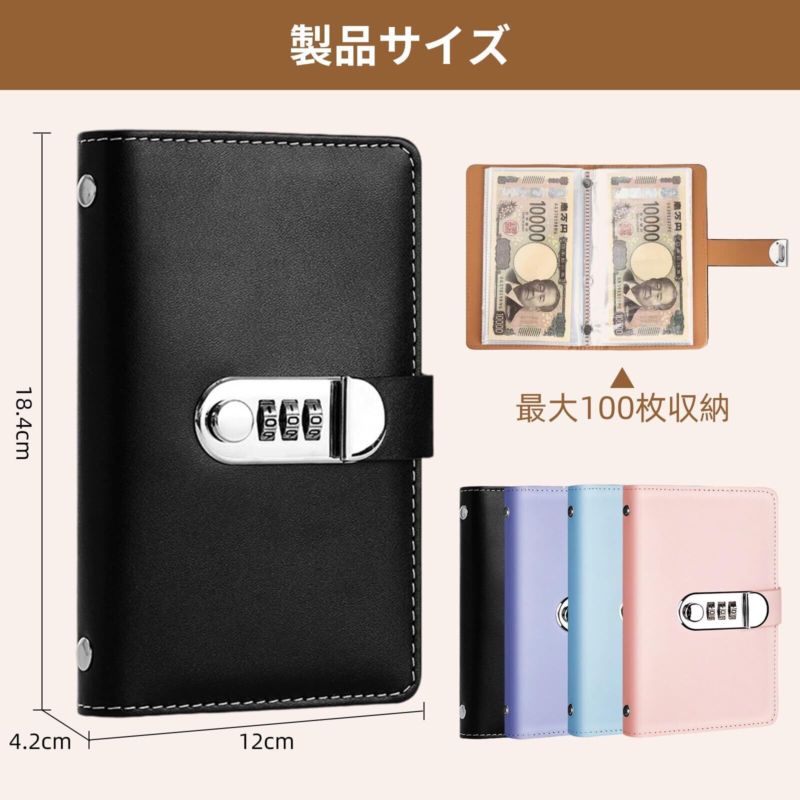 貯金バインダー 100日計画 お札専用貯金ファイル 10000円札収納 セキュリティロック付き 貯金手帳 貯金箱 お金管理 封筒貯金対応 子供から大人まで 貯金カード付属 (ブラック)