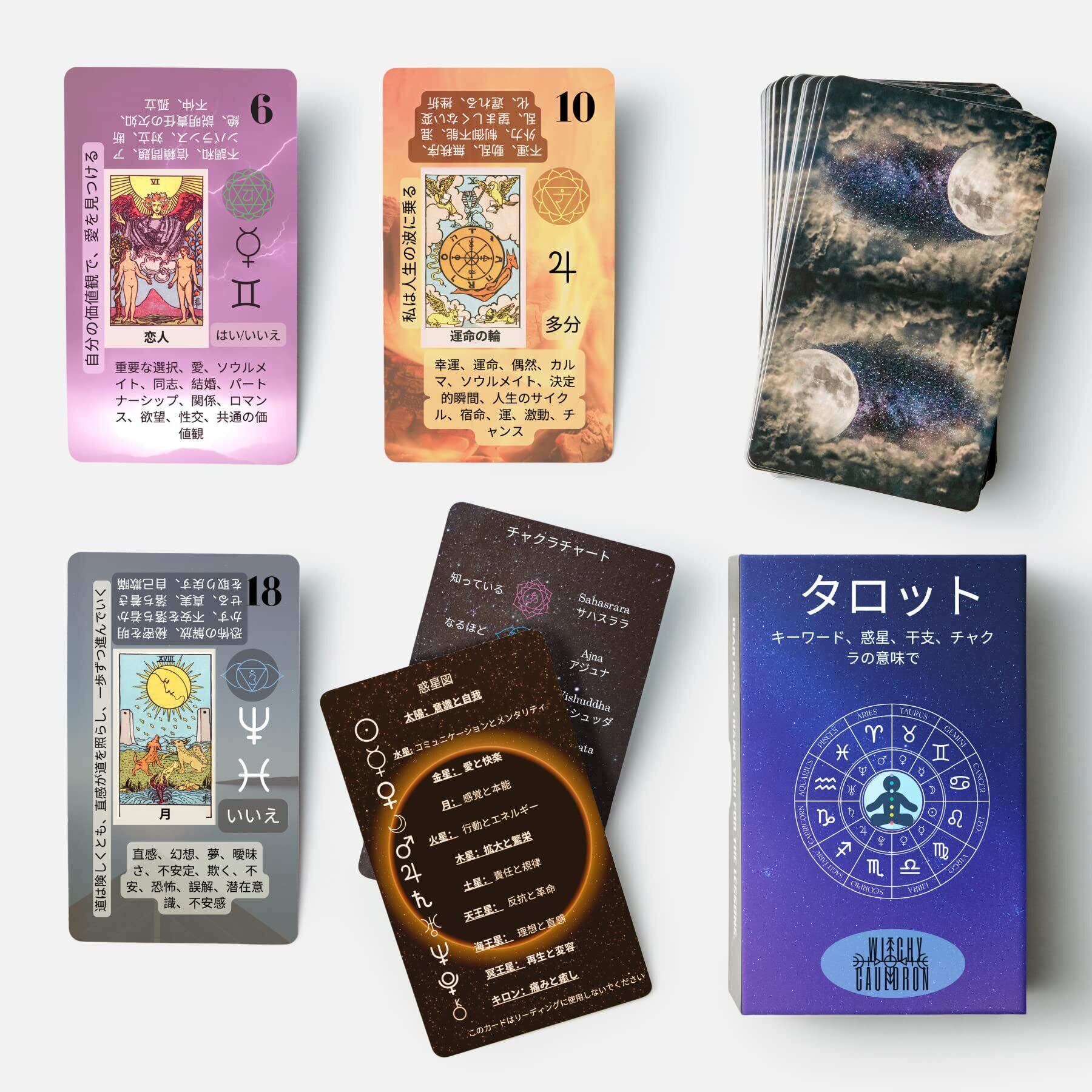 ウィッチィーコールドロン・ラーニングタロットデッキは、日本語でタロットを理解し、自己発見とスピリチュアルな成長をサポートします。あなたと宇宙のつながりを深める一歩です。 惑星カード - 星座の力を呼び起こし、運命を切り拓く