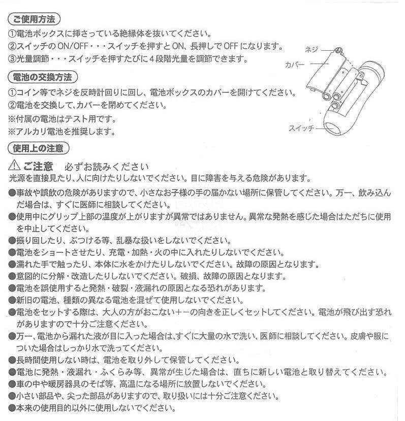 本体サイズ :直径30mm×250mm、発光部:直径26mm×150mm