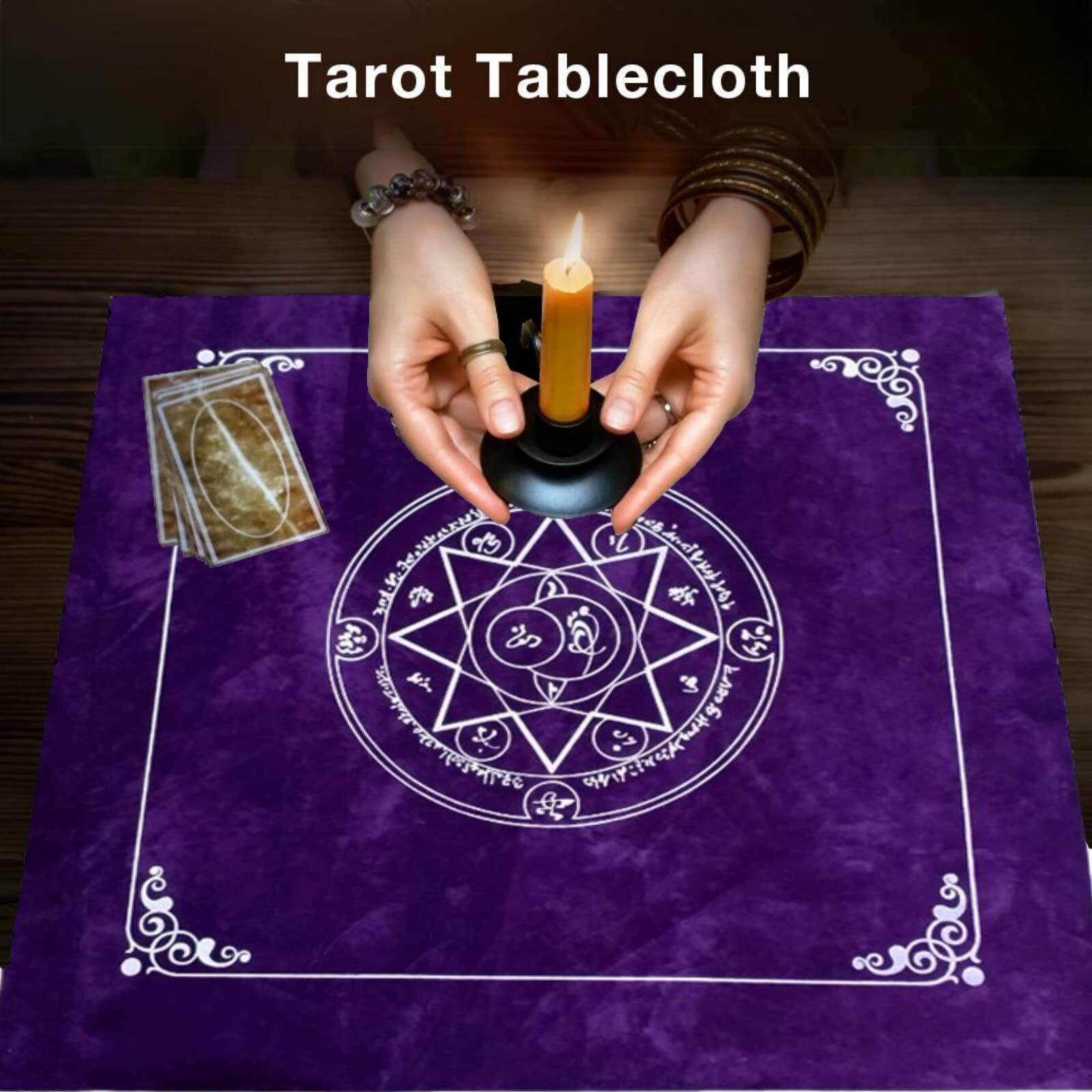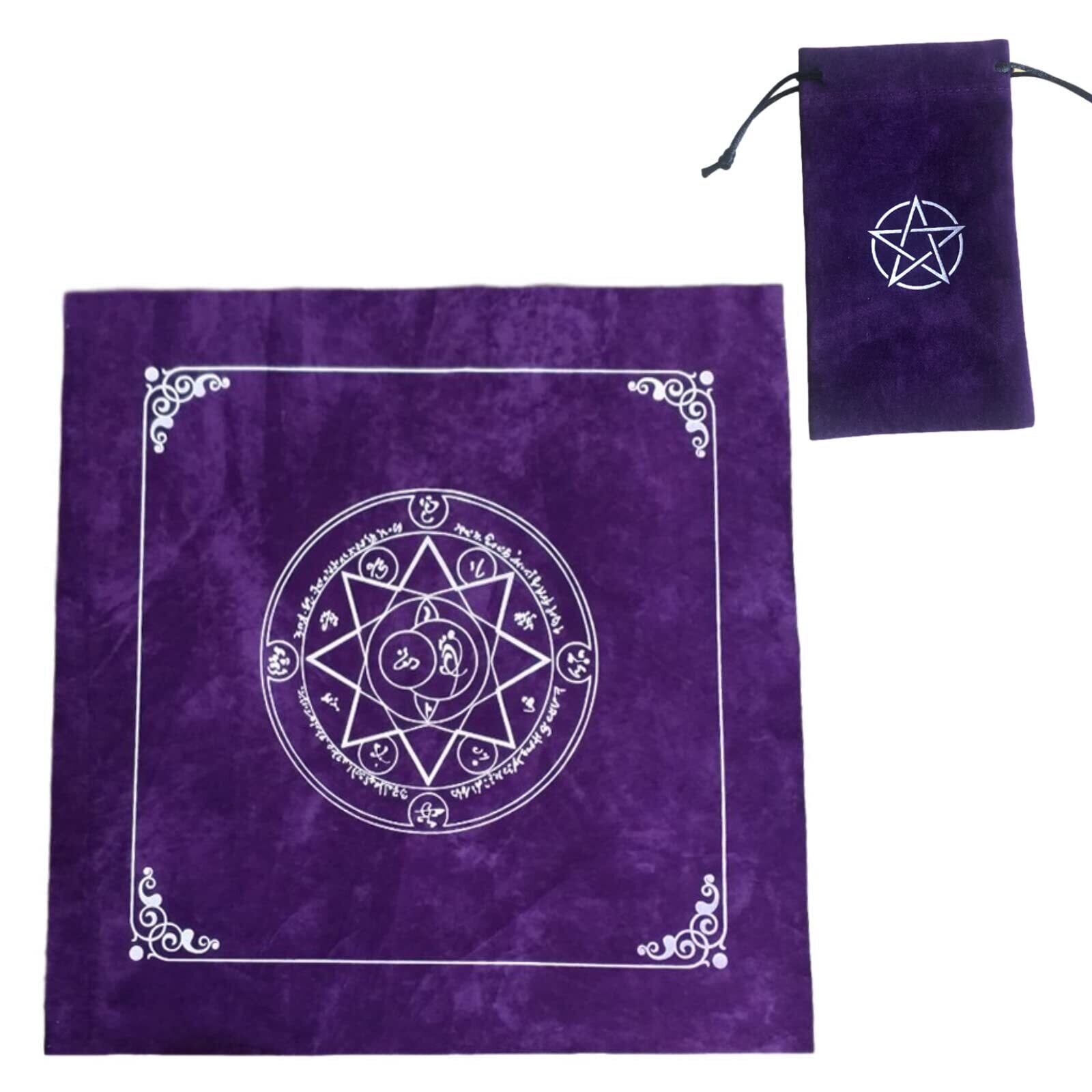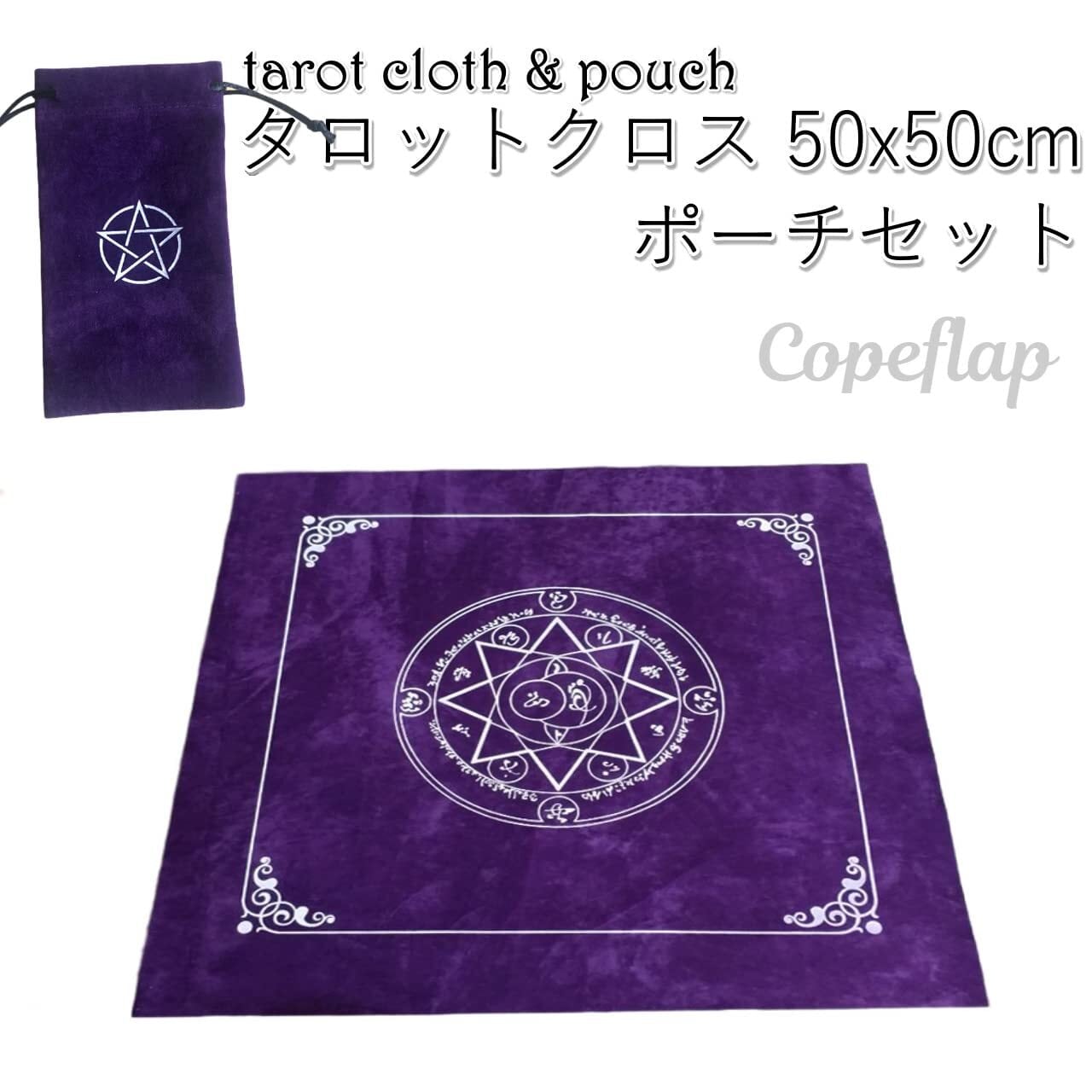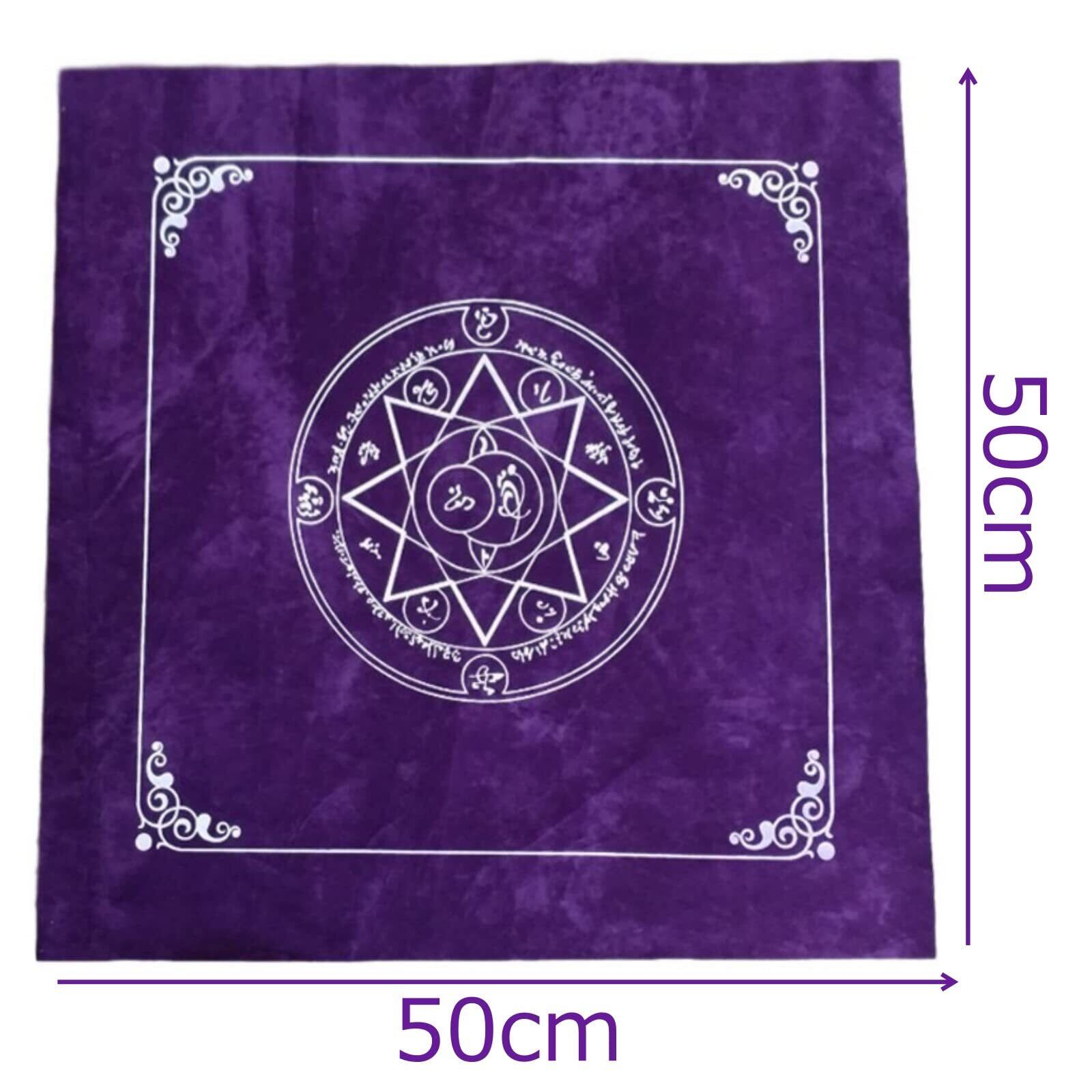 Copeflap タロットクロス ベルベット タロットカード 占い 敷物 ポーチ付き 50x50cm (紫(八芒星))