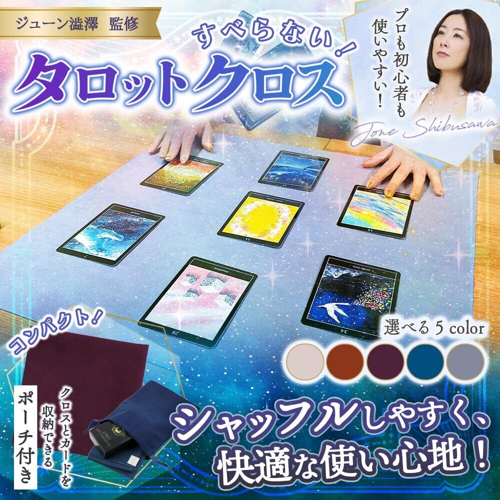 人気占い師・ジューン澁澤監修のタロットクロスがついに完成!「シャッフルのときにクロスがすべる」そんなお悩みを解決した、理想のタロットクロスです。軽くて薄いので、収納や持ち運びにも便利。サイズもコンパクトなので、お部屋の限られたスペースやイベント会場などでも使いやすい絶妙なサイズ感です。