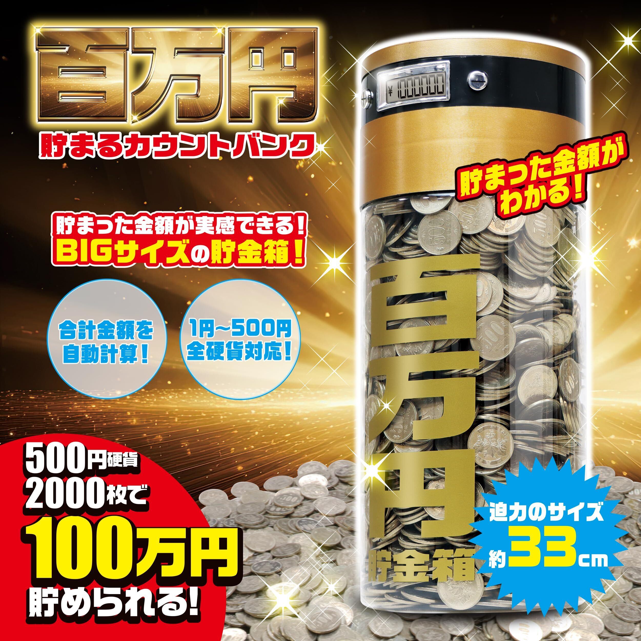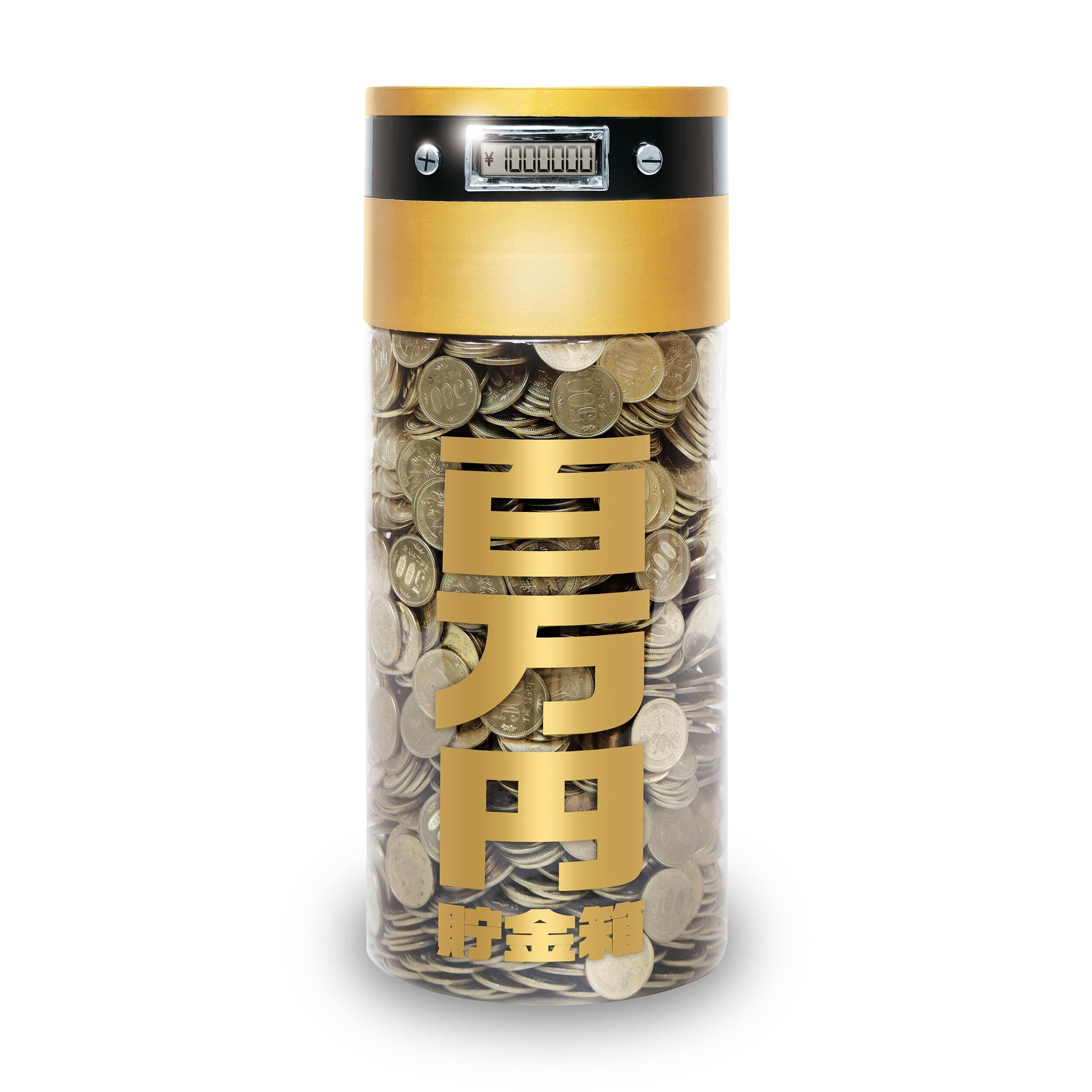 YSN 百万円 貯まる カウントバンク 金 | 全硬貨自動カウント機能付き 新500円玉対応 貯金額液晶表示機能 100万円貯まる 中身が見える 貯金箱