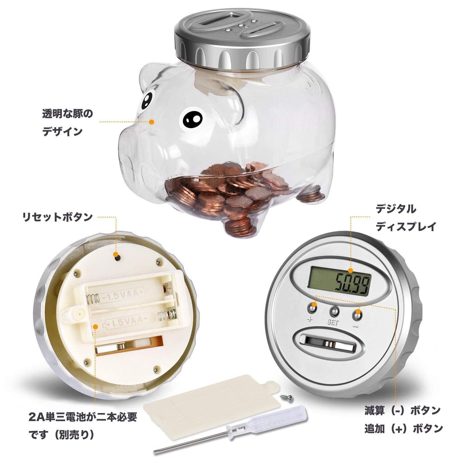 TWODAYS 透明 豚の貯金箱 デジタルカウン ちょきん箱 お札とコインを貯える 自動計算 バンク クリア
