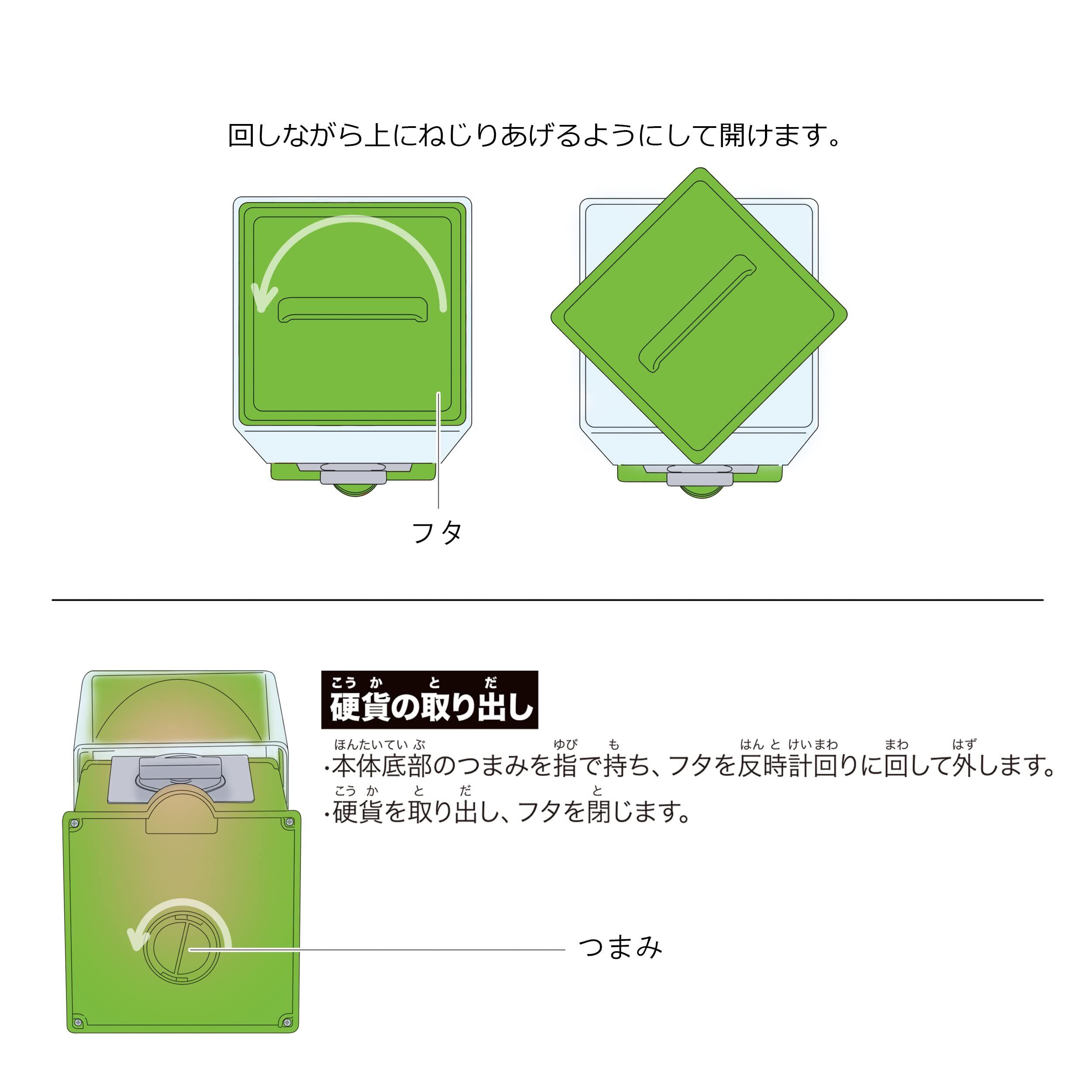 【注意事項】■小さいお子様が使用する時は、保護者の方と一緒に使用してください。■使用しない時は小さなお子様の手の届かない場所へ保管してください。■硬貨を投入せずに、レバーだけを回すのはお止めください。※故障の原因となります。