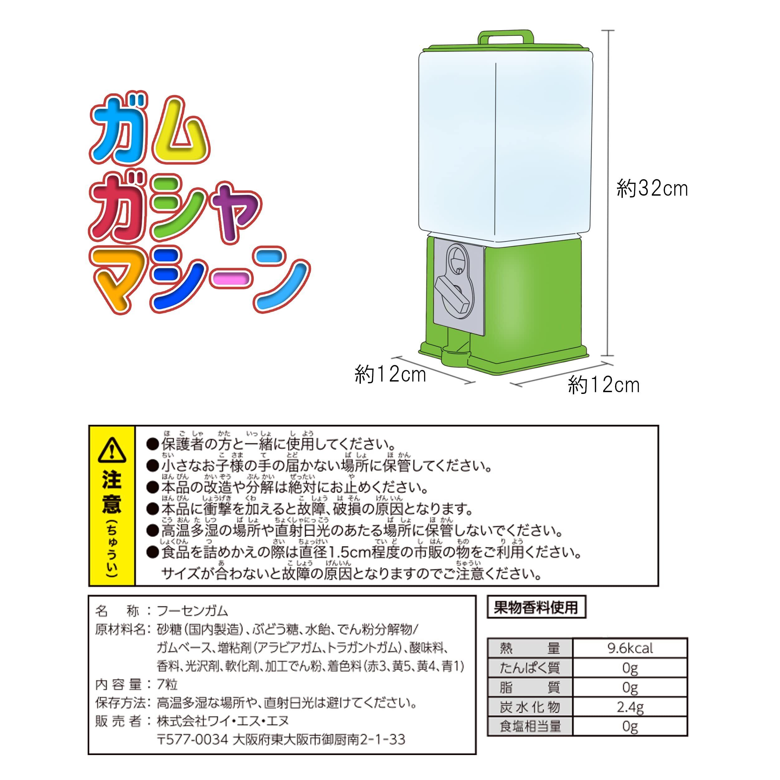 【セット内容】・ガチャ本体 ・ボールガム7個 【サイズ】約12×12×32cm 【重量】約500g(パッケージ含む)
