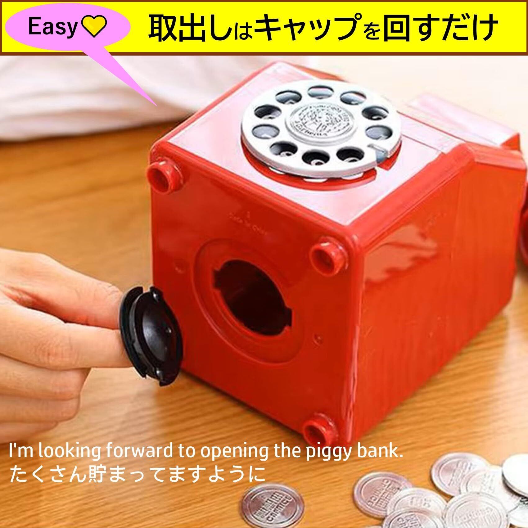 NOELAMOUR 貯金箱 500円玉 可愛い 電話 おもしろ 小銭 お札 おもちゃ 子供 レトロ おしゃれ 雑貨 (ピンク)