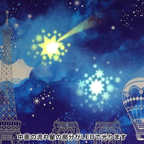 カードを開くとメロディーが流れる二つ折りのオルゴールカード。深いブルーが印象的な人気のプレミアムレター「ザインディゴスカイ」のデザインがオルゴールカードになって登場! 流れ星の部分がLEDで光ります。表紙には華やかなホログラム箔加工入り。