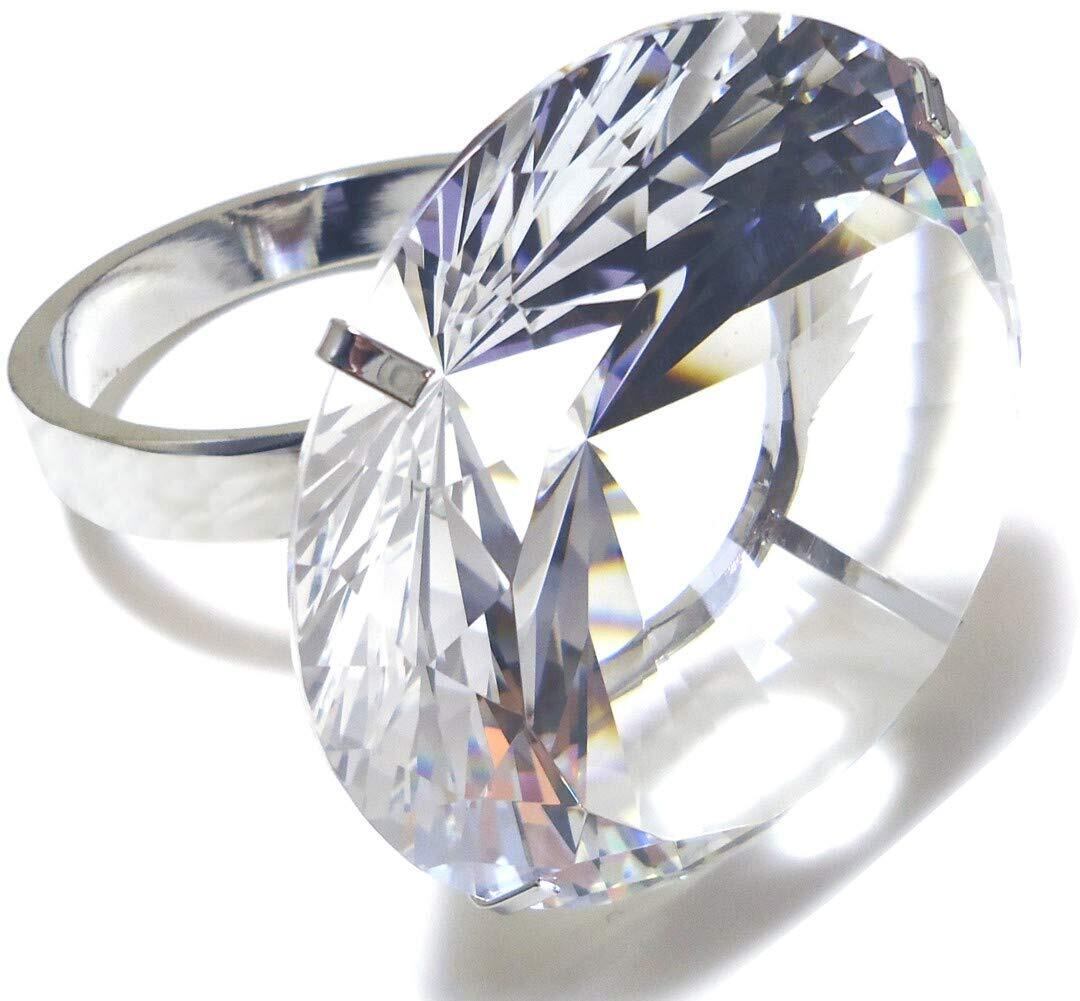 一瞬本物と見間違えてしまうほど、キラキラと眩しいばかりに輝く巨大なおもちゃのダイヤモンド指輪です。