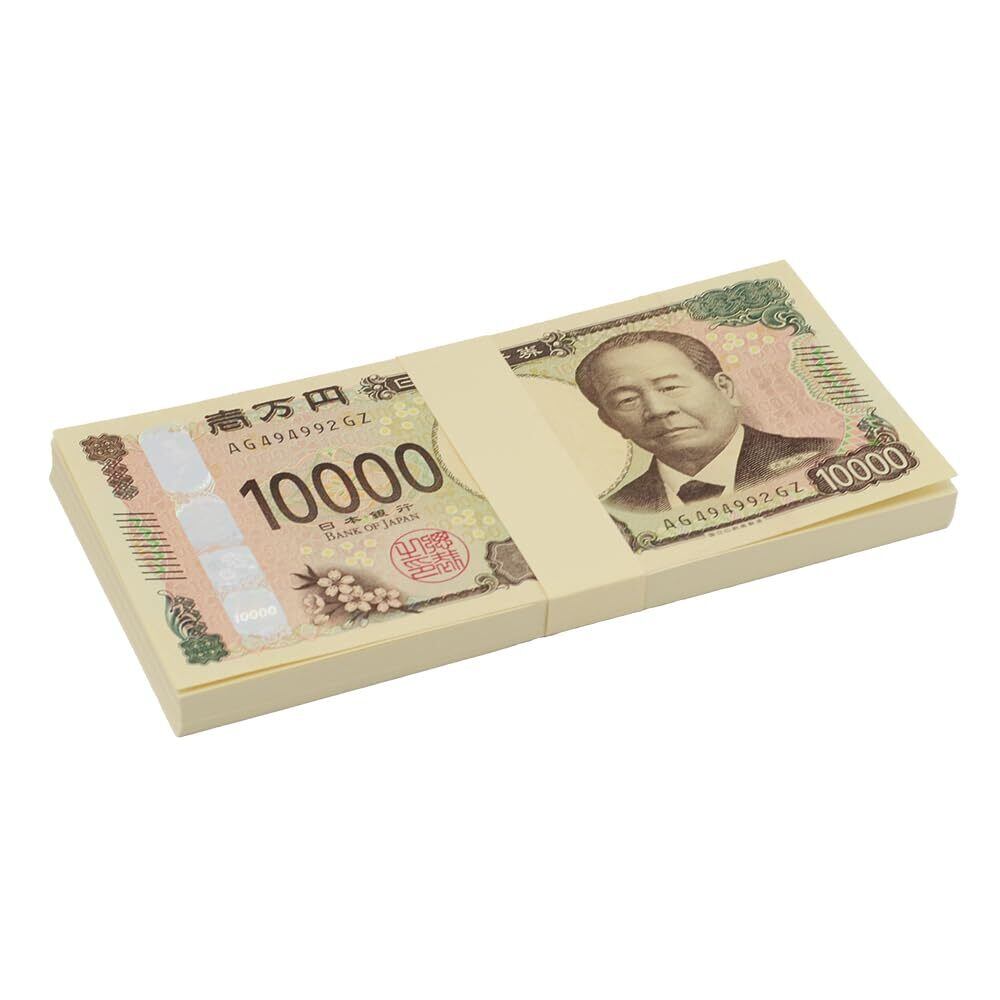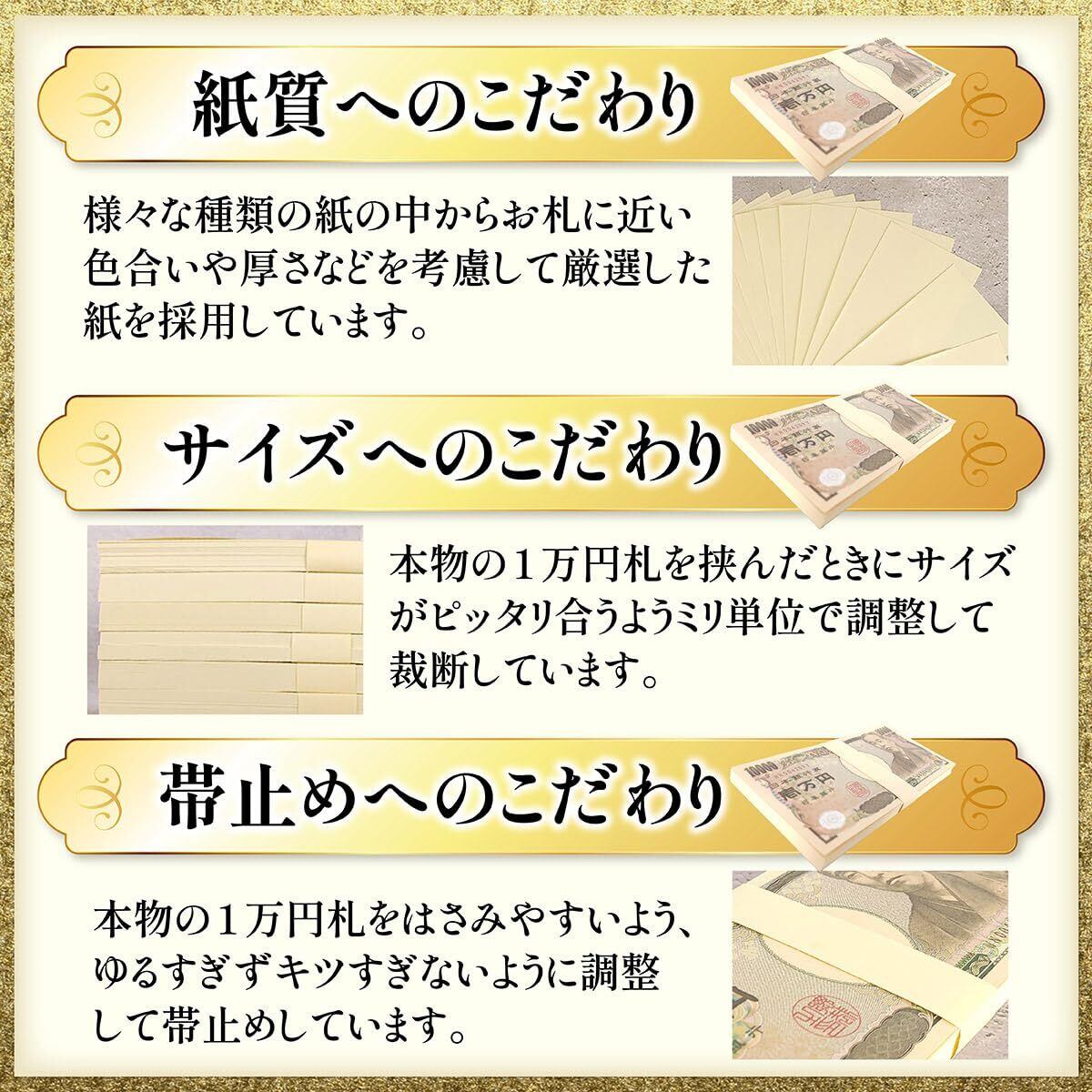 1万円札と同サイズ、似た色の紙を100枚の束にしています。