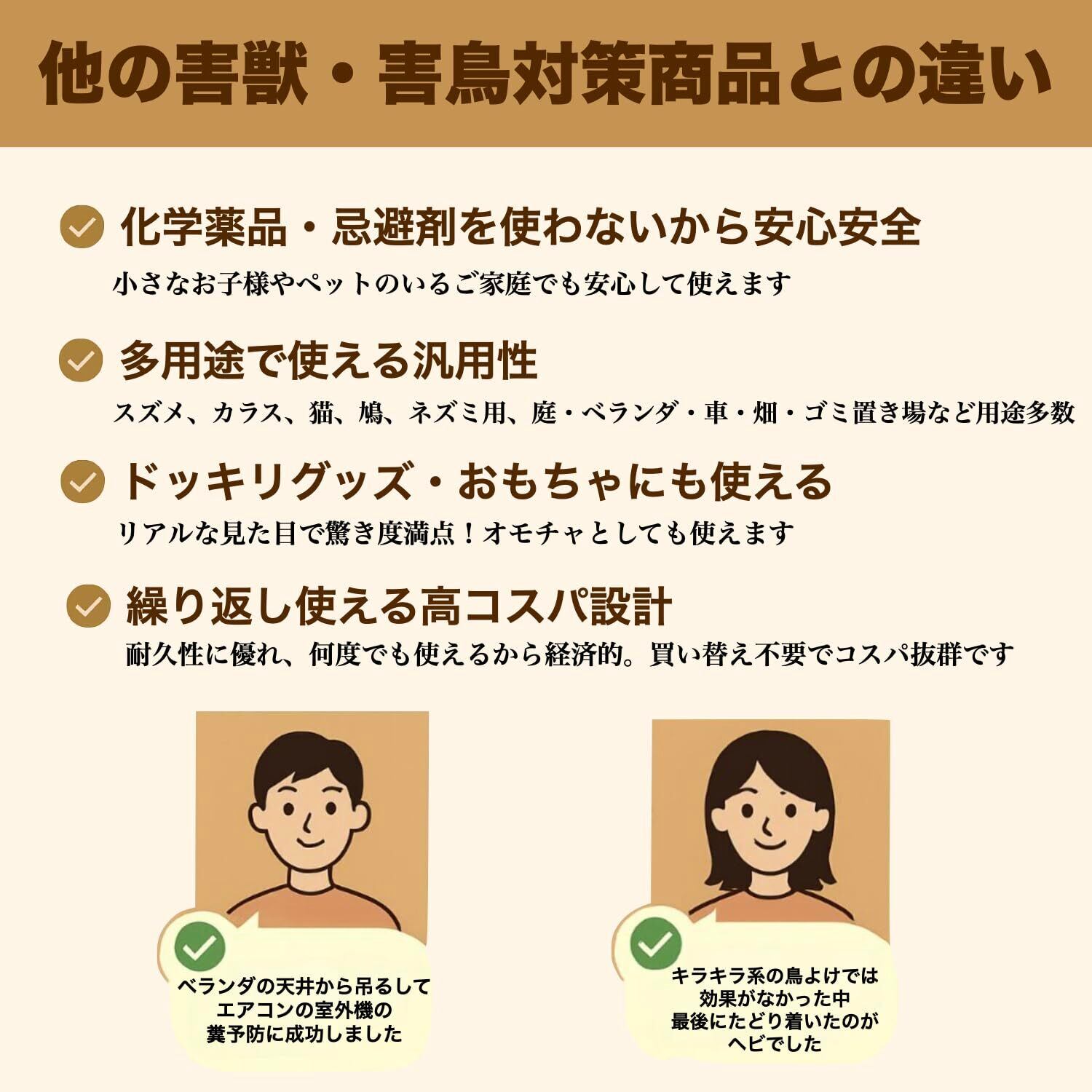 ドッキリグッズとしてだけでなく、害鳥対策にも頼れるアイテム!