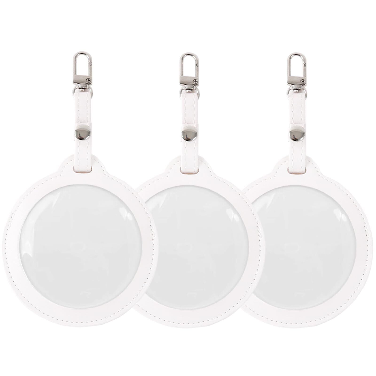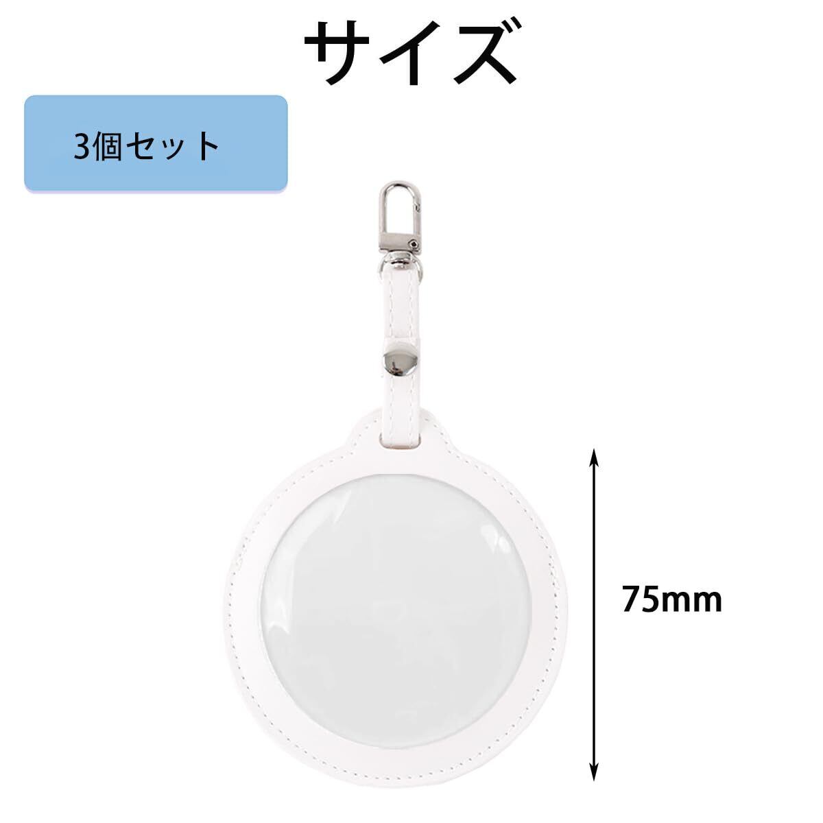 缶バッジカバー 3枚セット PUレザー 缶バッジ キーホルダー式 透明 保護カバー 高い透明性 傷防止 コレクション ディスプレイ 収納 痛バッグ 写真フレーム 丸バッジ 58~75mmバッジに最適