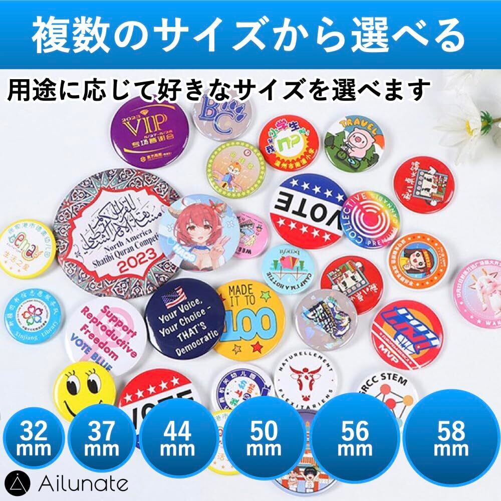【複数のサイズから選べる】6つのサイズからピンバッジを選べます。サイズは、直径32mm、37mm、44mm、50mm、56mm、58mmの6つから選ぶことができます。