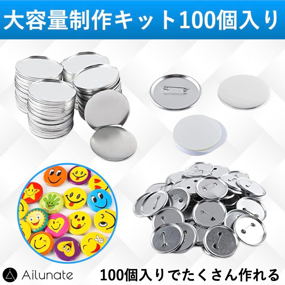 Ailunate 缶バッジ バッチ ピンバッジ パーツ 素材 缶バッチ 缶バッジマシーン用 丸型 無地 メタル DIY 制作 100個セット