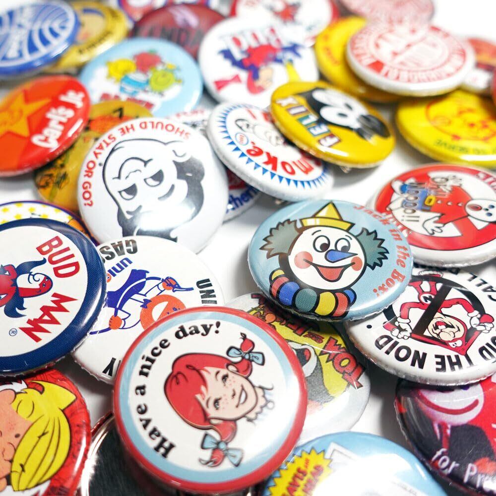 モーター&アドバタイジング缶バッチでございます。キャップやカバンなどはもちろんいろんなシーンでお使いいただけます。サイズ:約直径3cm(本体)