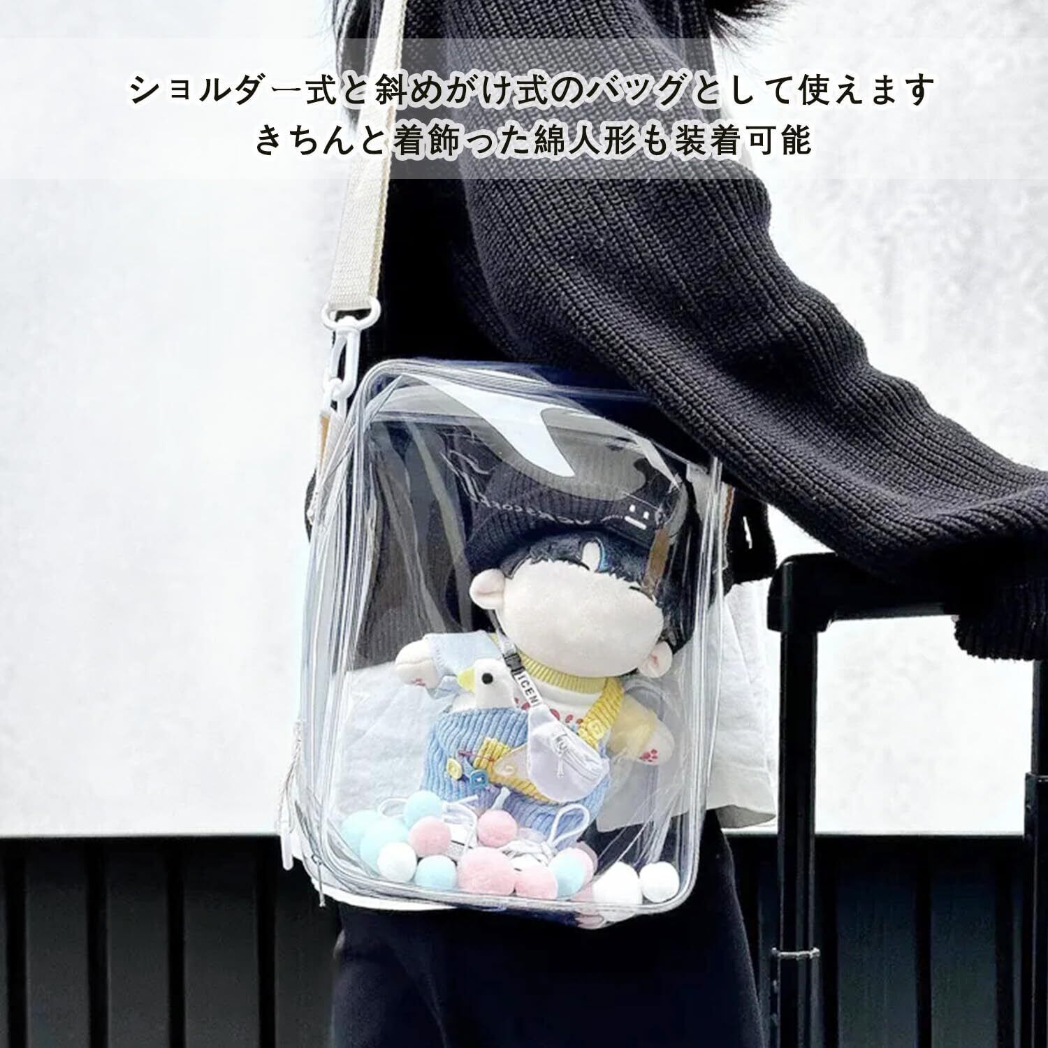YUYAKESHI 痛バッグ 20-25cmぬいぐるみ用 外出 全透明 大容量 見せバッグ ショルダーバッグ 人形入れ ぬいば PVC 取り出し便利 クリア 25cm高