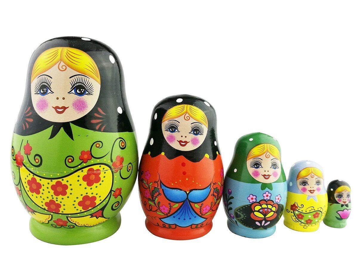 ミニ グリーン 女の子 花パターン マトリョーシカ マトリョーシカ人形 手業 手塗り 木製品 5個組 誕生日プレゼント 贈り物 子供のおもちゃ 飾り物 置物