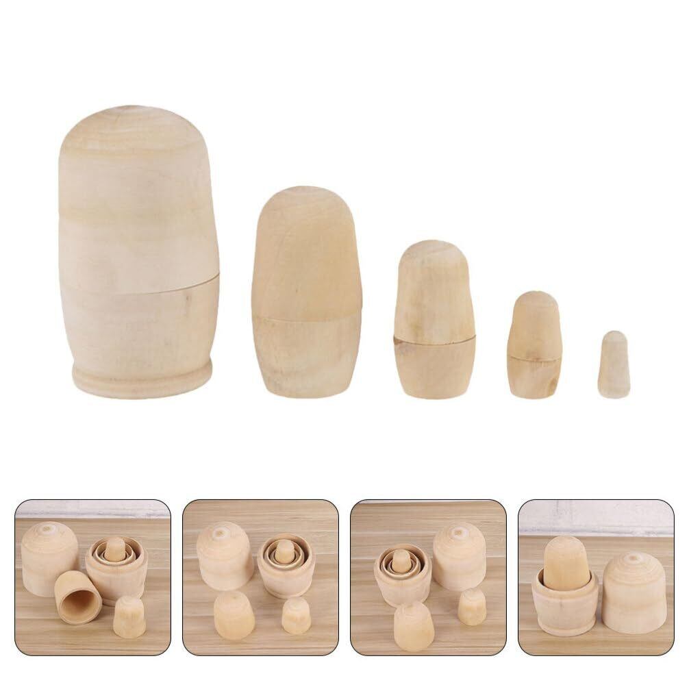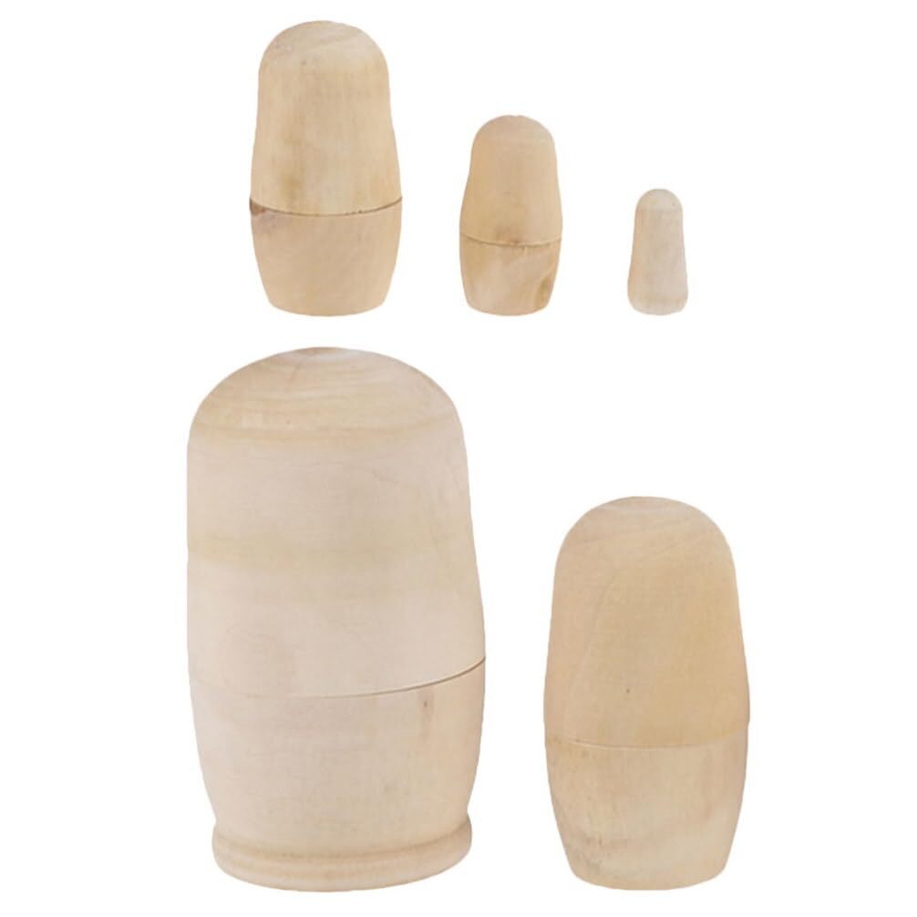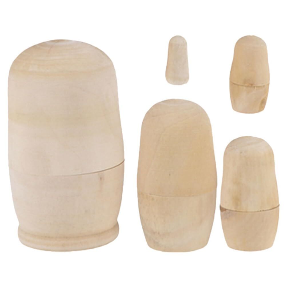 OSALADI 未塗装 白木マトリョーシカ 5個組 110mm シア 伝統工芸品 手作りキット DIYマトリオスカ 未完成の入れ子 キット 置物 未塗装ネスト ブ おもちゃ 木製