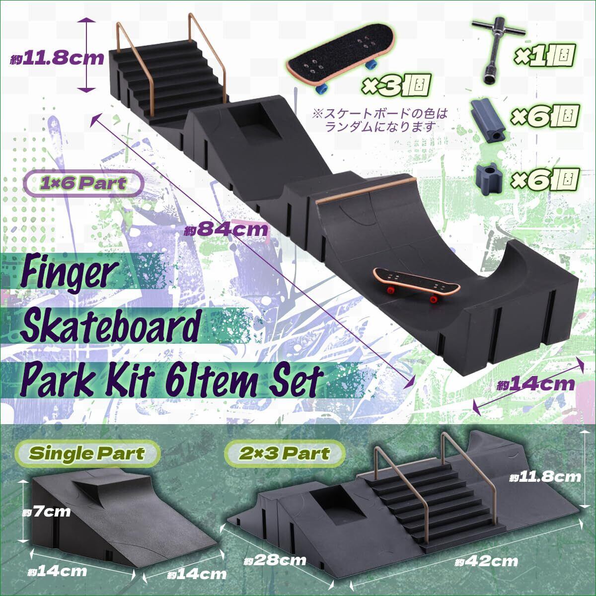 ギフトとしても最適、親子で楽しめるユニークアイテム このフィンガースケートボードセットは、大人から子供まで幅広い世代に喜ばれるアイテムです。親子で一緒に楽しめる為、休日や誕生日のプレゼントとして大変人気です。指先のトレーニングとしても優れ、家族や友人同士で競い合ったり協力してスケートパークを作り楽しめます!【セット内容】スケートパーク(6個セット:全6アイテム)、フィンガースケートボードx3個、コネクト工具13点付属