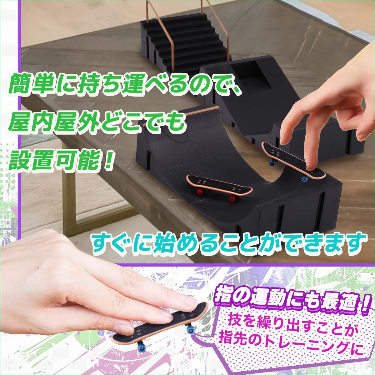 指先のスキルを高めるトレーニングツールとして最適なフィンガースケートボード このフィンガースケートボードセットは、単なるおもちゃを超えたトレーニングツールとしても大変優れています。指のコーディネーションや柔軟性を鍛えるだけでなく、フレットボードのテクニックや集中力の向上にも役立ちます。手軽に始められ、スケートボードのトリックを指先で再現することで、楽しみながら技術を高められます。初めて指スケに挑戦する方から、プロを目指す方まで、どんなレベルのプレイヤーにも満足していただけるアイテムです。