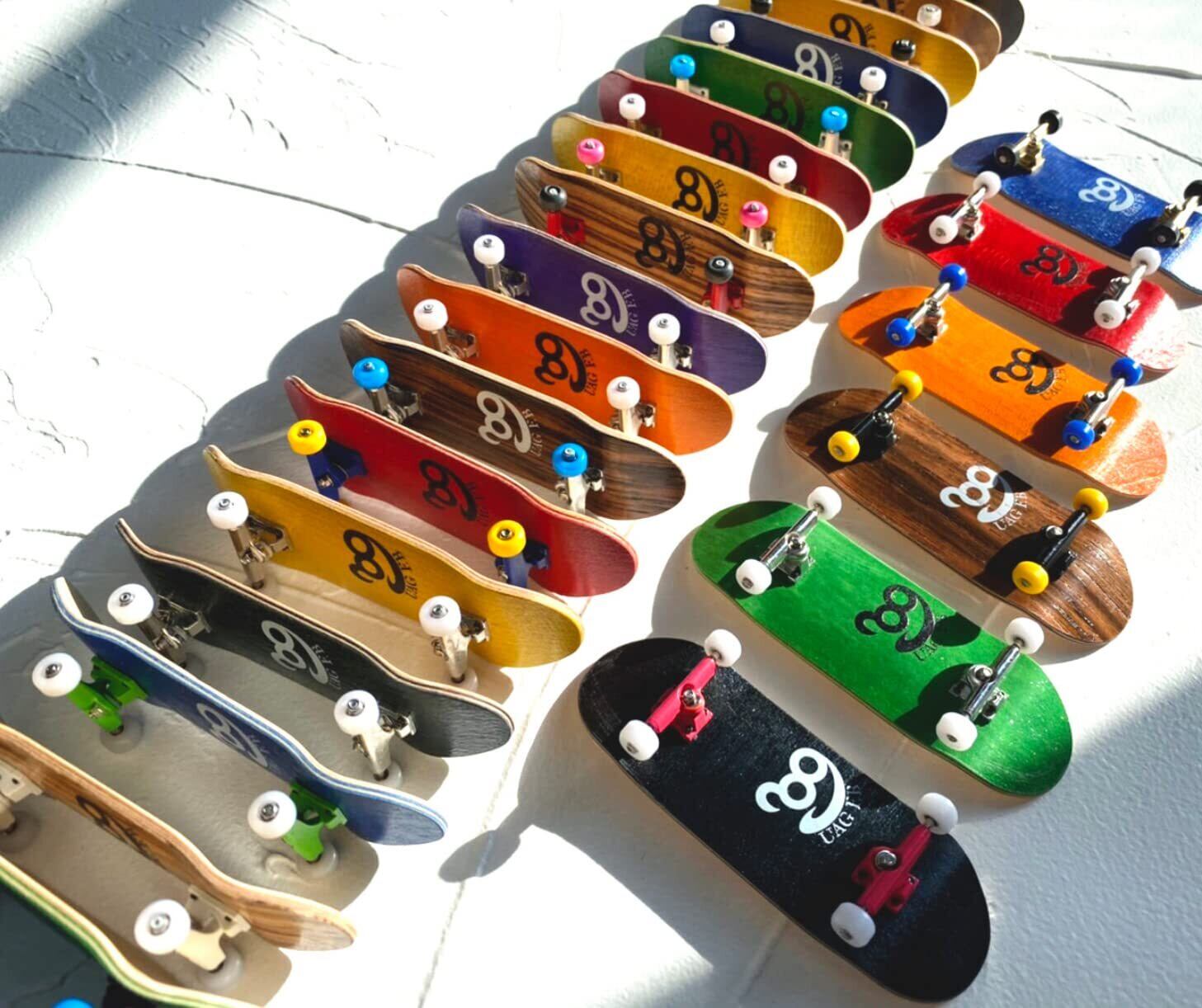 【商品説明】 ■日本の指づくり職人が、高品質な素材と高精度な製法、手にしやすい価格にこだわって制作。 ■弾きの良いカナディアンメープルを5枚重ねたデッキ。 ■ガタツキを軽減するために自社開発した、錆びにくいステンレス製のスペーサー付きトラック。 ■ベアリングを装着して滑らかに回転する、強化プラスチックウィール。 ■一度使ったらやみつきになる吸いつきで人気のデッキテープ「GORIGRIP MAX」付き。 ■スケボーと変わらぬトリックを極める人も、当時を思い出して気軽にトライする人も、子どもといっしょに走らせて遊ぶ人も。 ■UAG F.Bの高性能コンプリートで、指から、人生を楽しもう。