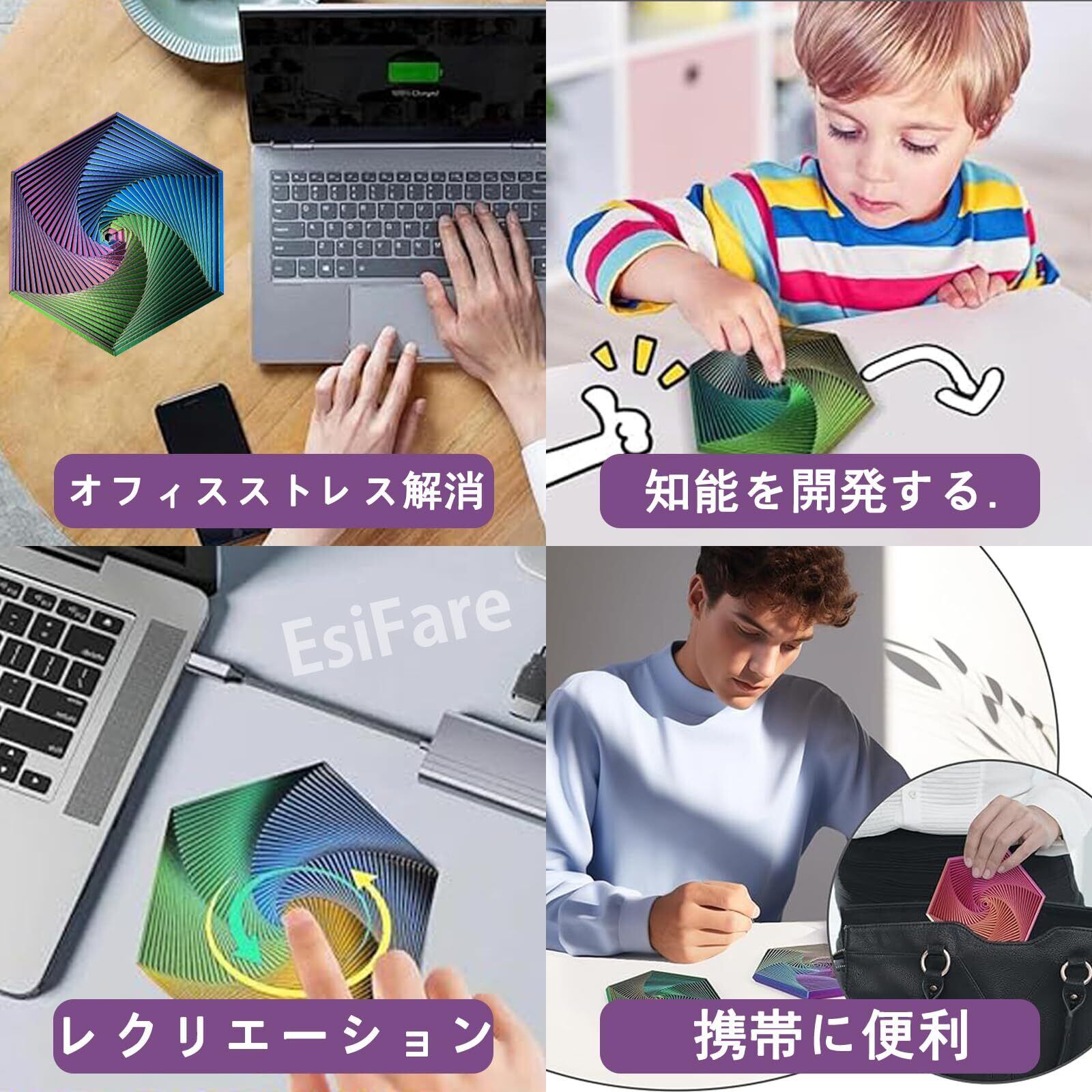 【美しい螺旋と正方形のパターン】このストレス解消グッズは、繊細な螺旋と正方形のパターンが特徴で、視覚的な魅力を高めます。おもちゃを回したり操作したりすると、生き生きとした模様の癒し効果を感じられます。視覚的な魅力、触覚的な感覚、癒し効果が完璧に融合し、集中力を高め、不安を軽減し、全体的な健康を向上させます。