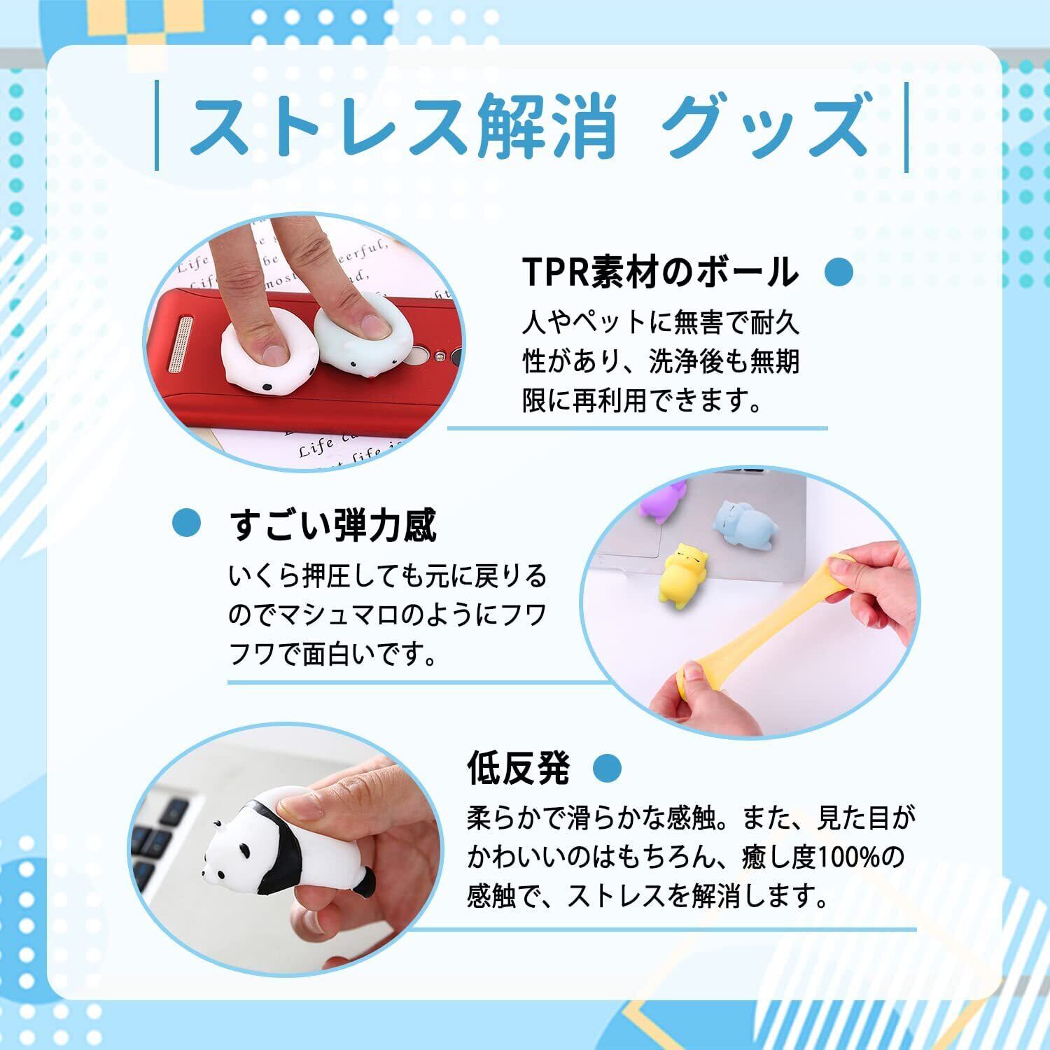 握る スクイーズ 玩具:ちょうどいいサイズで、片手で握れます。かわいいおもちゃを常に握り続くことにより、ストレスをある程度解消することができます。コンパクトで軽量のため、外出する時にバッグやポケットに入れると便利に持ち運べます。気持ちいいふわふわ触感で思う存分にぷにぷにして癒されます。手触りと弾力性抜群、自宅でも、学校やオフィスでもおすすめのぷにぷに癒しおもちゃです。