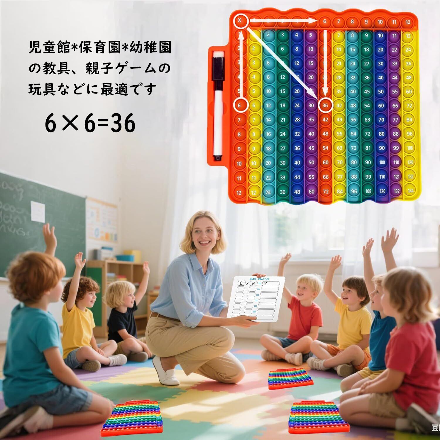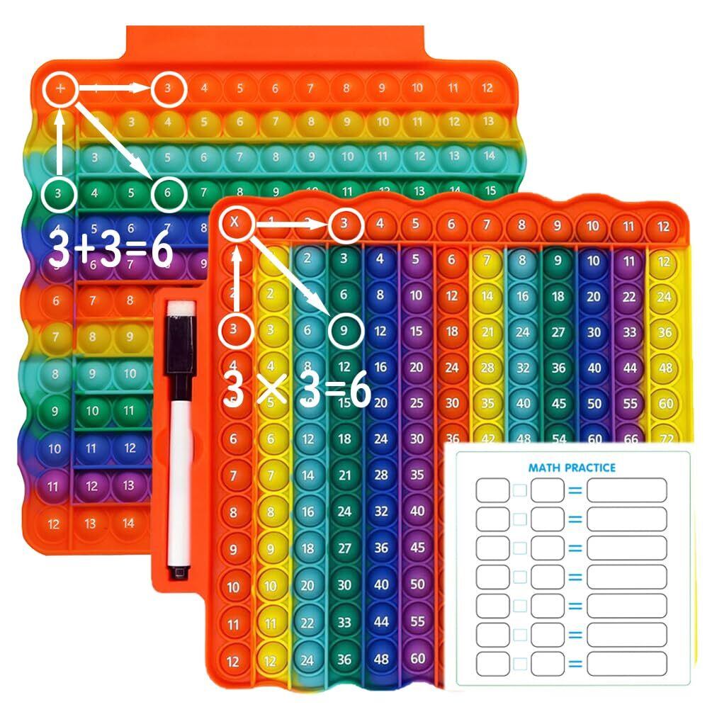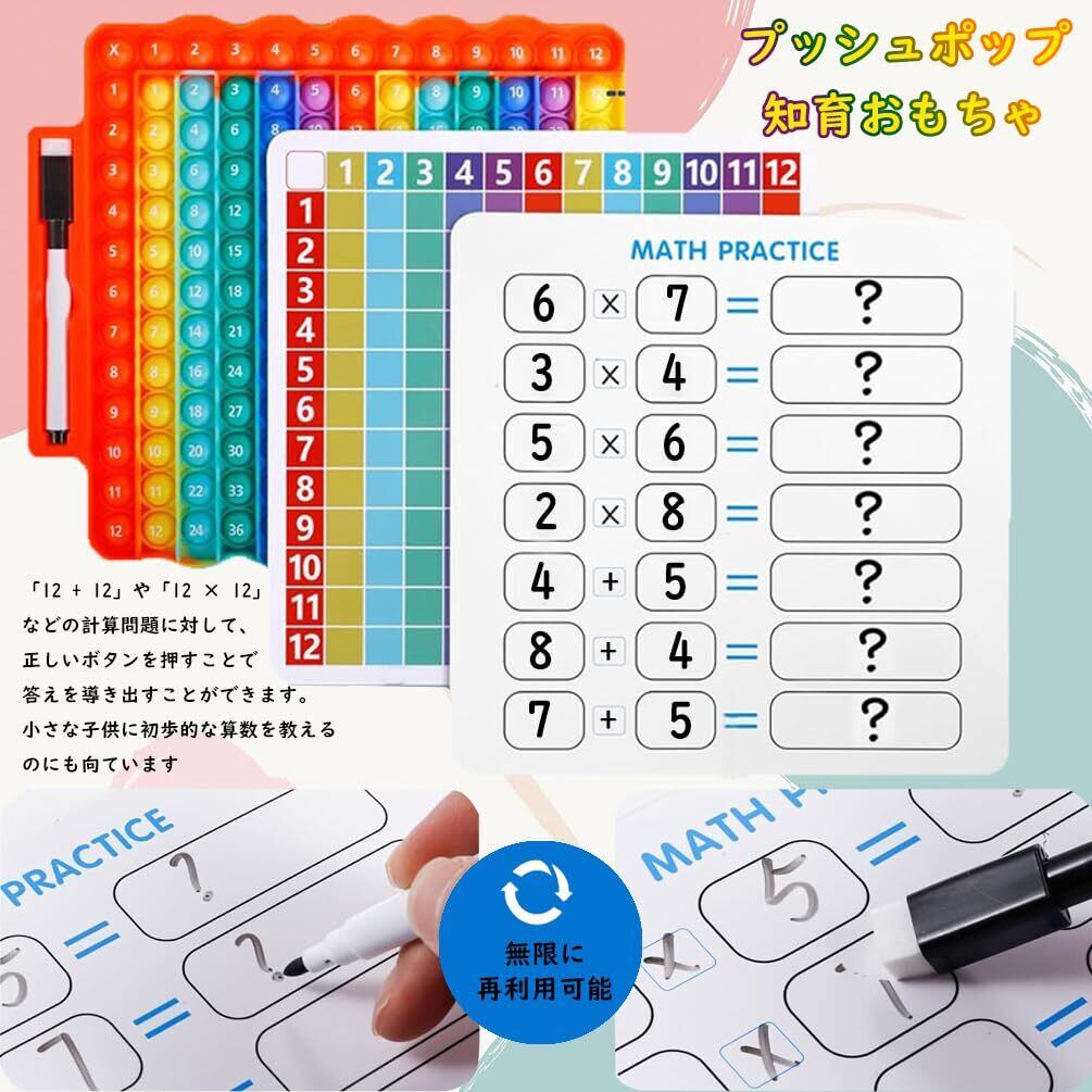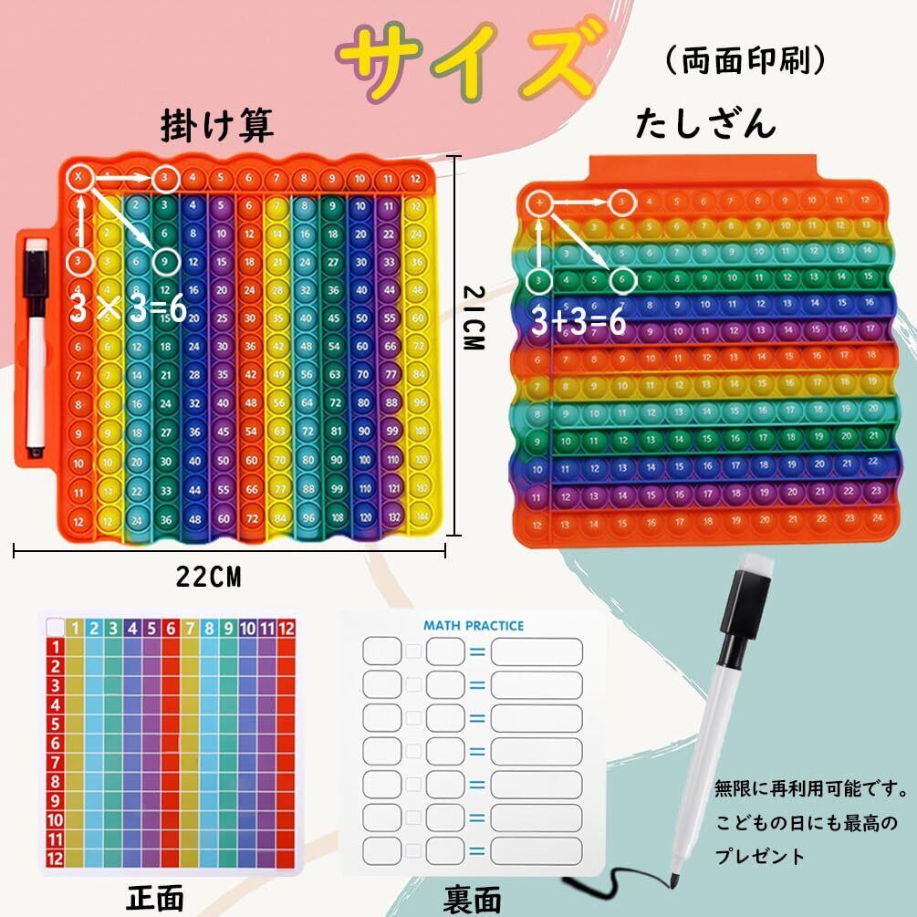 Fuushspoy 掛け算九九 たしざん 両面印刷 プッシュポップ 知育おもちゃ 学習玩具 ボードゲーム プッシュポップバブル ストレス解消グッズ スクイーズ玩(ゲームボードマーカー付き)