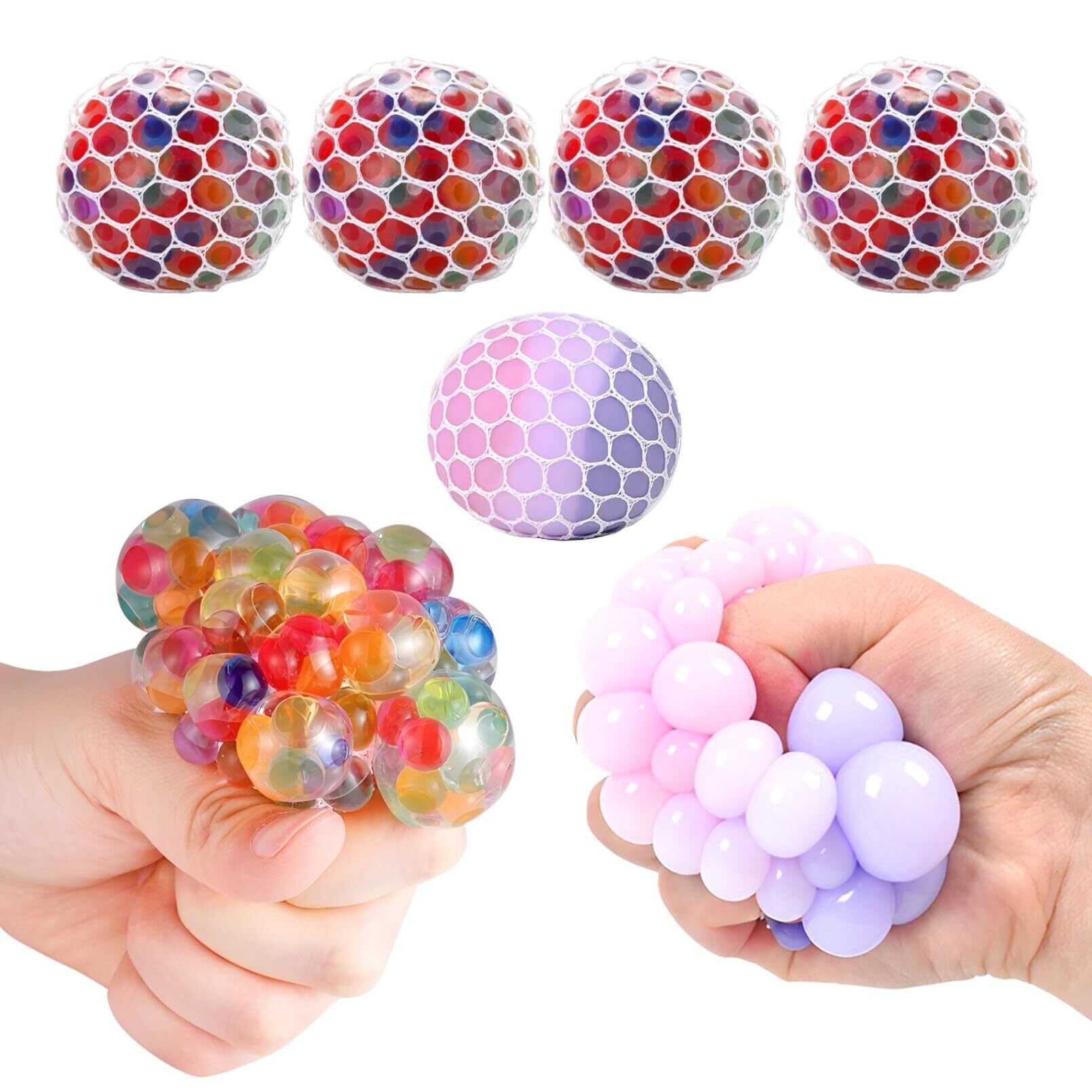 【ストレスリリーサー】握るとブドウのように網からプチプチ飛び出る感覚が面白い、スクイーズボール5個セットです。一度握ったらずーっとにぎにぎしていたくなる、ストレス解消グッズとして人気のアイテムです。