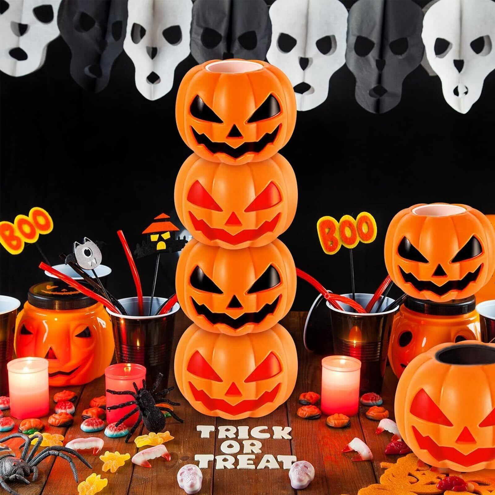 【LEISURE CLUB】 ハロウィン おもちゃ スクイーズ 光る カボチャ 置き物 プレゼント 4個セット 柔らかい ストレス解消 グッズ 景品 小物 卓上装飾 (光るカボチャ)