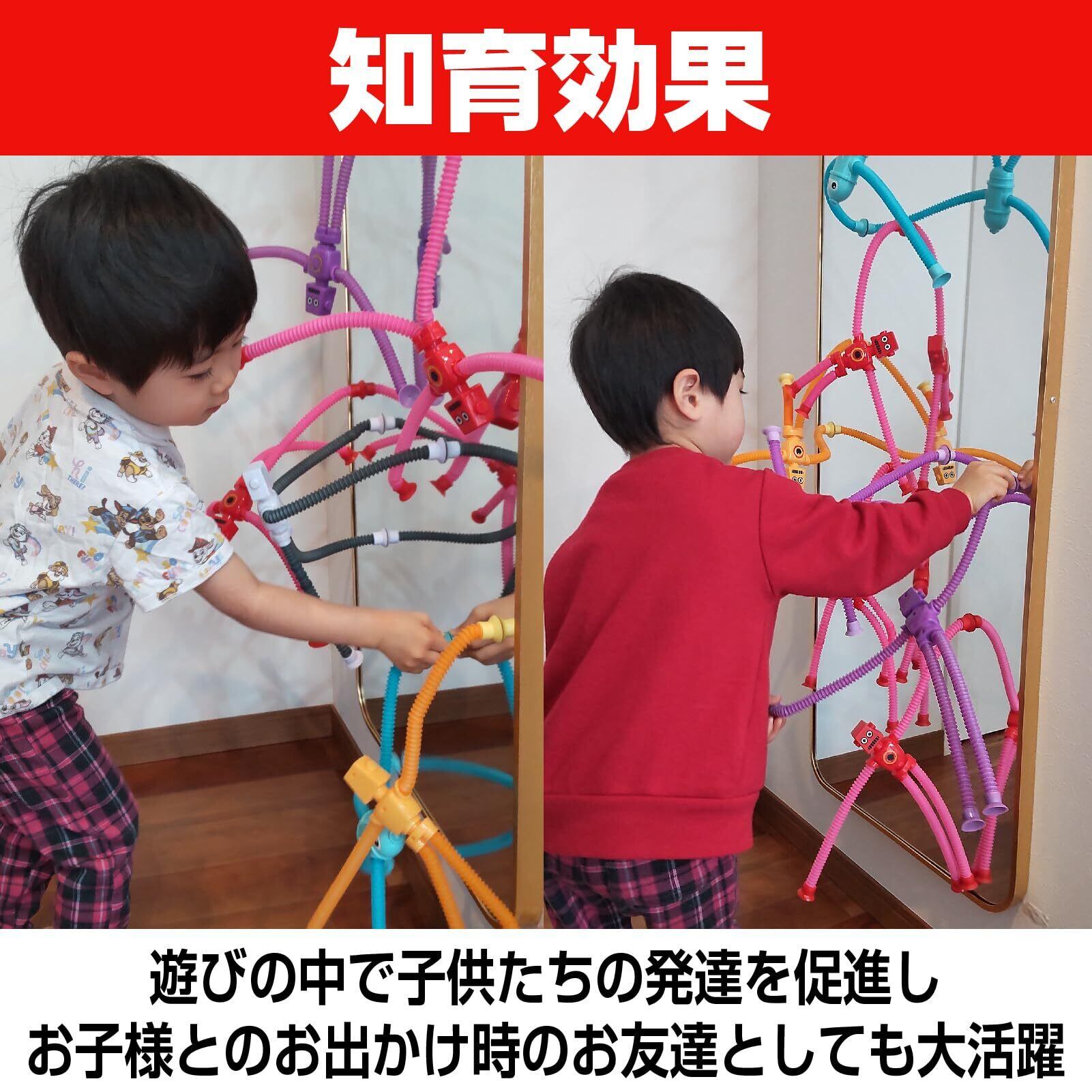 【ポップチューブ ロボット】手足が伸縮し、吸盤が付いたおもちゃが、想像力をかき立て、創造的な遊びをサポートします。