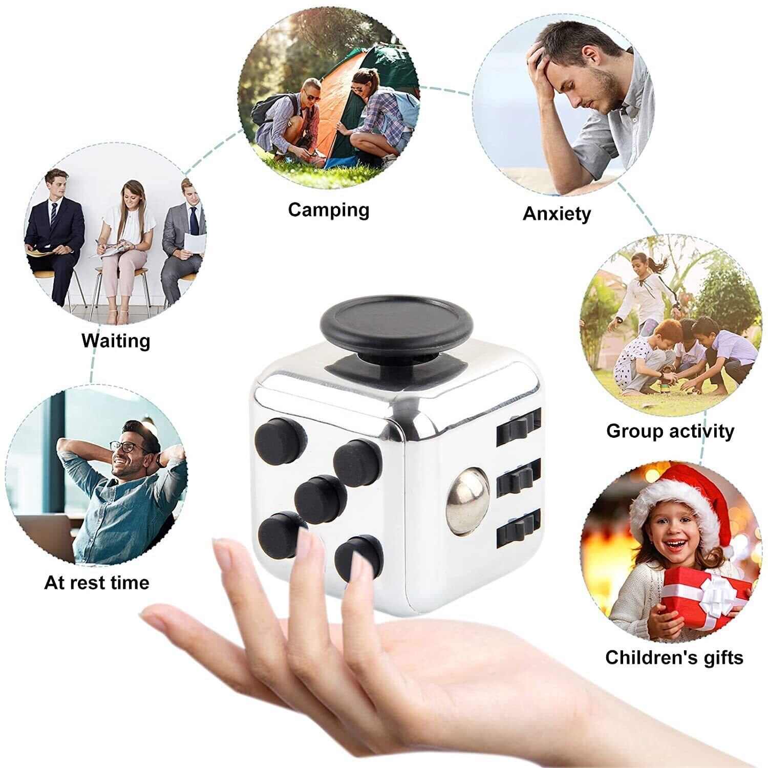 【ストレス解消】フィジェットキューブは不安、ストレス解消、挫折、緊張、集中力が続かい時など、イライラを抑えるための手持ちおもちゃです。手元を動かすことで集中力を高めたり、退屈な時間を暇つぶしさせてくれたり、指でいじって気を紛らわせるグッズです。