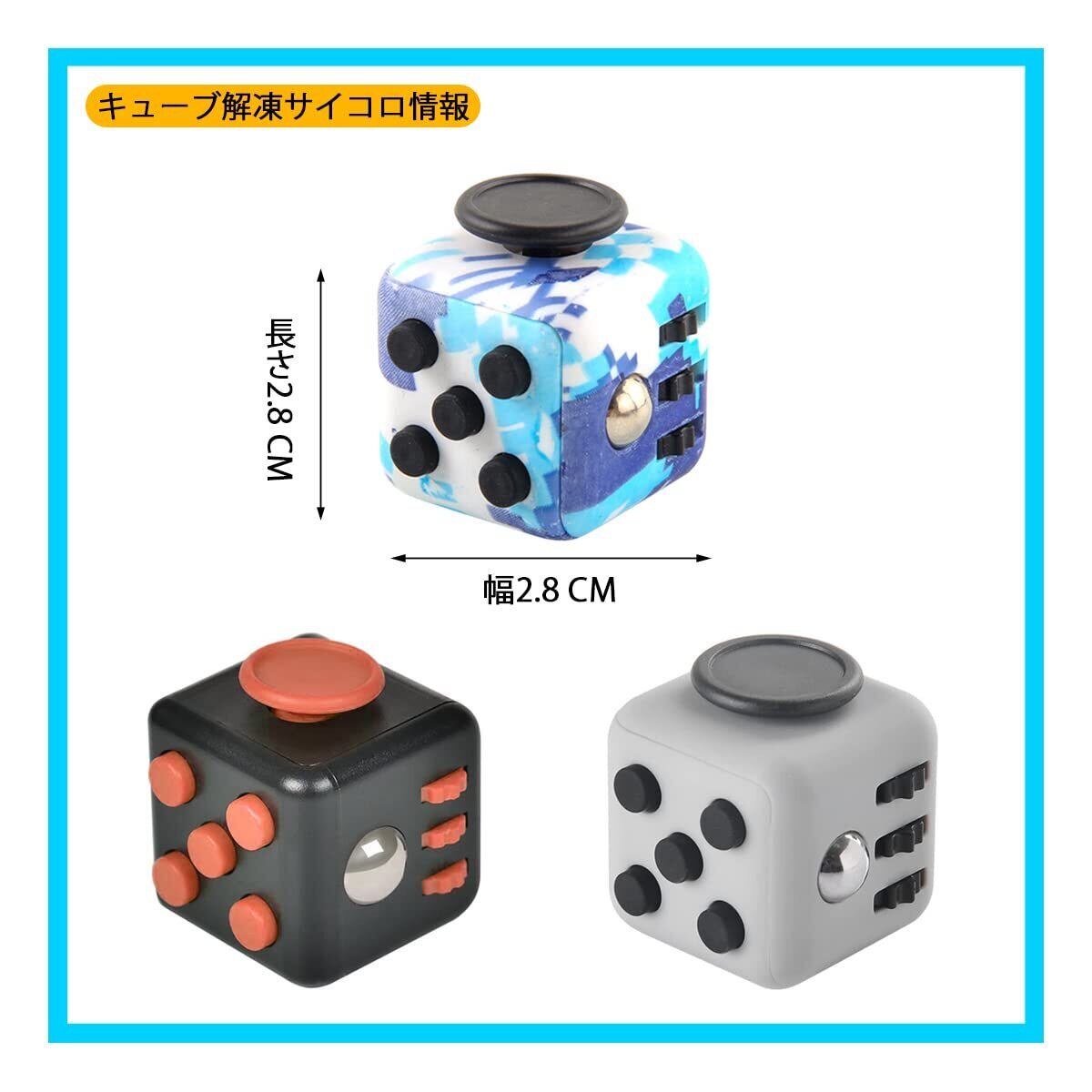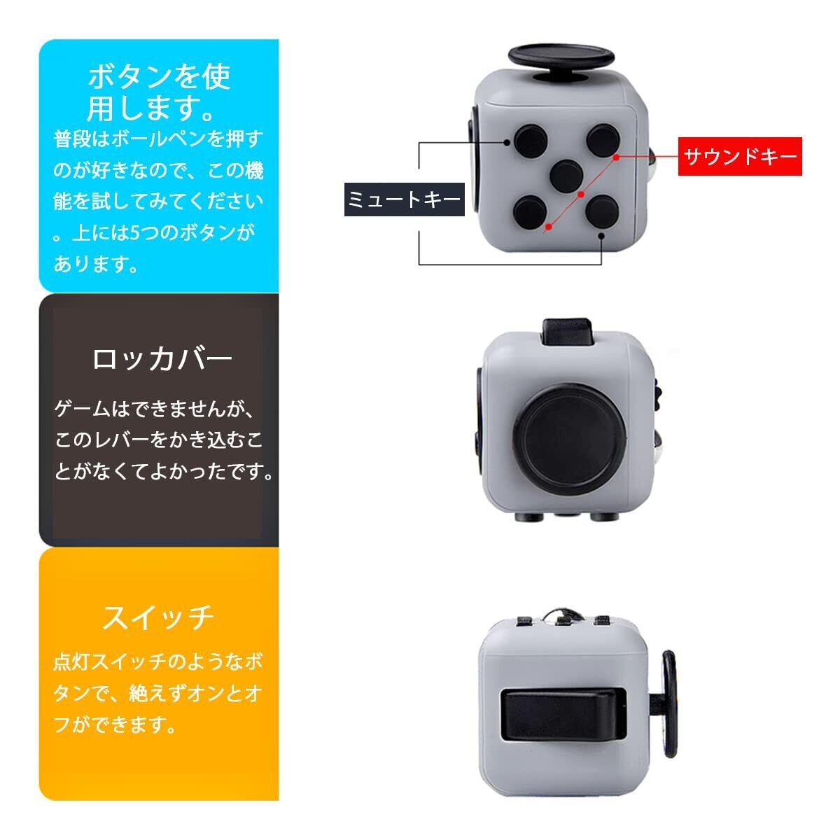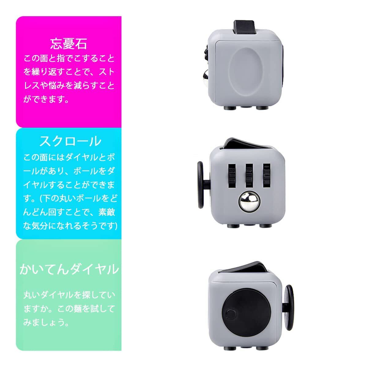 今話題のデスクトレ→ストレス解消キューブ!名前の通りにストレスがたまった時にストレスを解消するために作られたおもちゃです。小型なフォーカス玩具ですが、コンパクトで軽量で、ポケットに入る十分なミニサイズでいつでもどこでもお楽しみくださいませ。 イライラやストレスの解消などで結構前から海外のガジェット好きの間で流行ってました。貧乏ゆすりや多動感を抑えると効果がある・・・という噂の新しいオモチャです。手持ち無沙汰な時にいじって遊ぶおもちゃです。「Fidget」がそわそわ・もじもじという意味で、”シャーペンカチカチ”や貧乏ゆすりの代わりに使ったりします。 それぞれの面に いろいろなギミックが仕掛けられておりますので数種類の手遊び・指遊びが可能です。「Click(クリック)、Glide(グライド)、Flip(フリップ)、Breathe(ブリーズ)、Roll(ロール)、Spin(スピン)」が設計されていて、好みに合わせて使い分けられて、男女老若に適用します 高質量材料を採用:超耐久性ABSプラスチック製ボディ、スクラブ感によって長寿を確保する上高級感も得られます。万が一ご個別商品は物流などの原因で不良になる場合は、いつでもお気軽に当社までご連絡ください。 どんな時にも:自分用は勿論、プレゼントとして実用性が高いし、オシャレな感じがあるし、大勧めです。周りの人に迷惑せず緊張、不安を緩和できます。