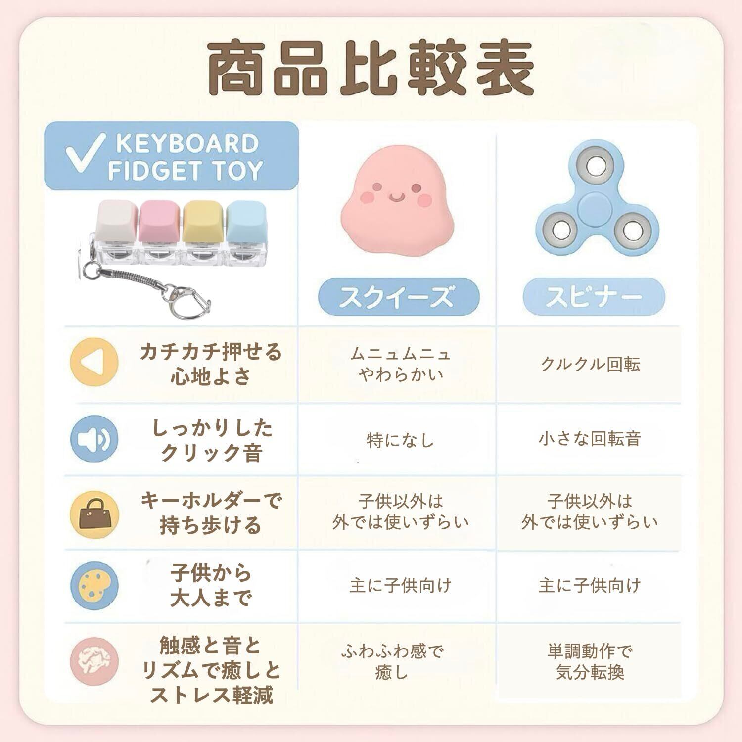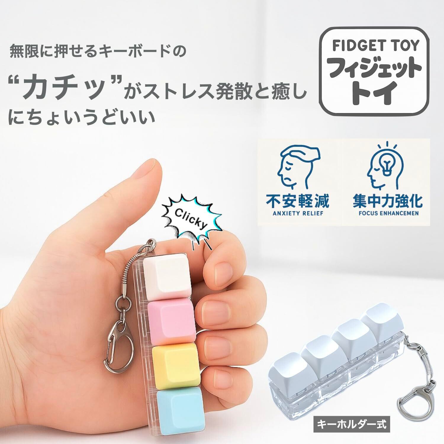 【“カチカチ系”の癒し】「なんだか落ち着く…」ストレスや不安を和らげ、気分をリフレッシュできるフィジェットトイ。手軽に気分転換。スクイーズ好きにもおすすめの、指先で感じる確かなクリック感