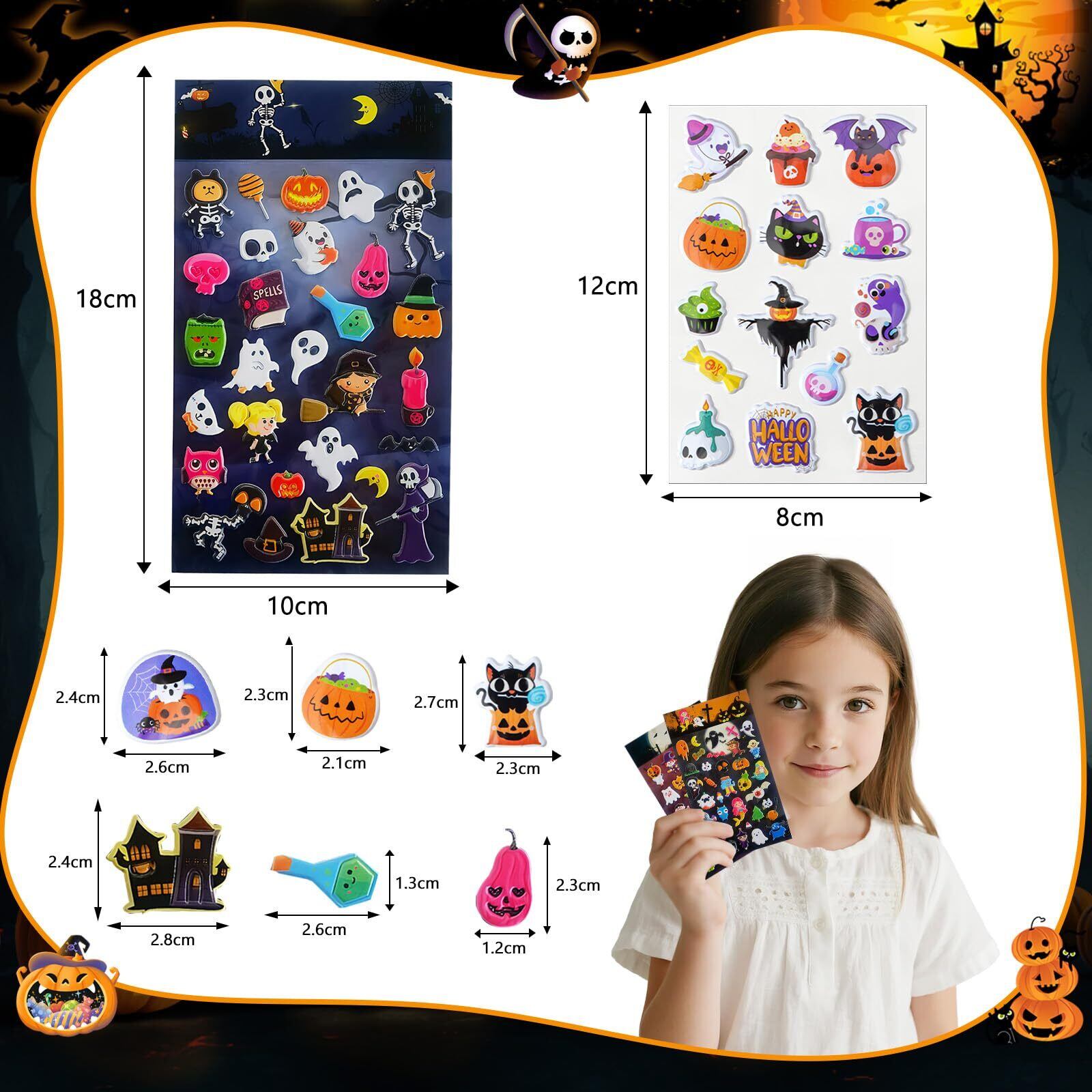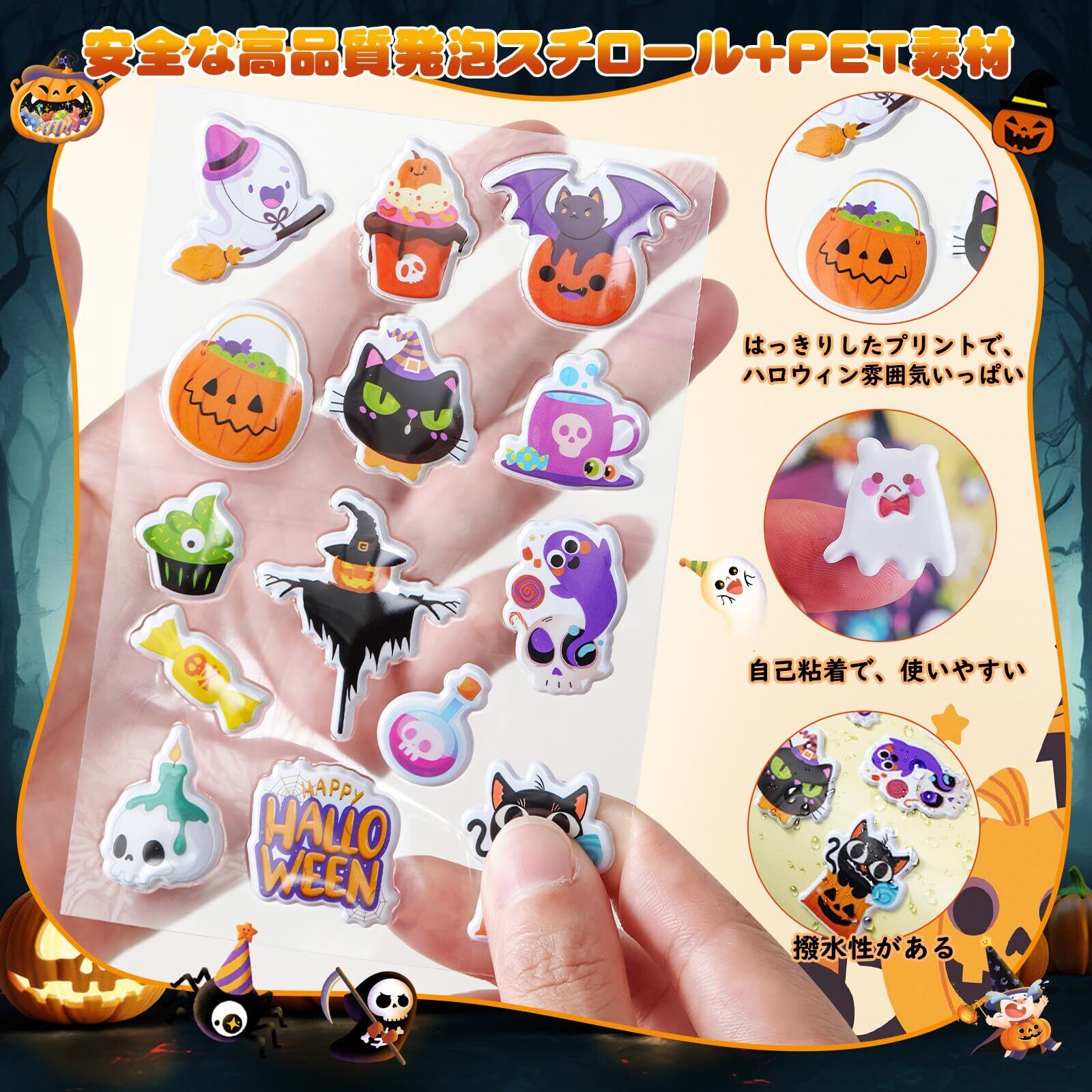 mefeny ハロウィン シール ぷくぷくシール ステッカー 可愛い 8枚 180点 ぷにぷに 飾り付け ご褒美 手帳 DIY 贈り物 日記帳用