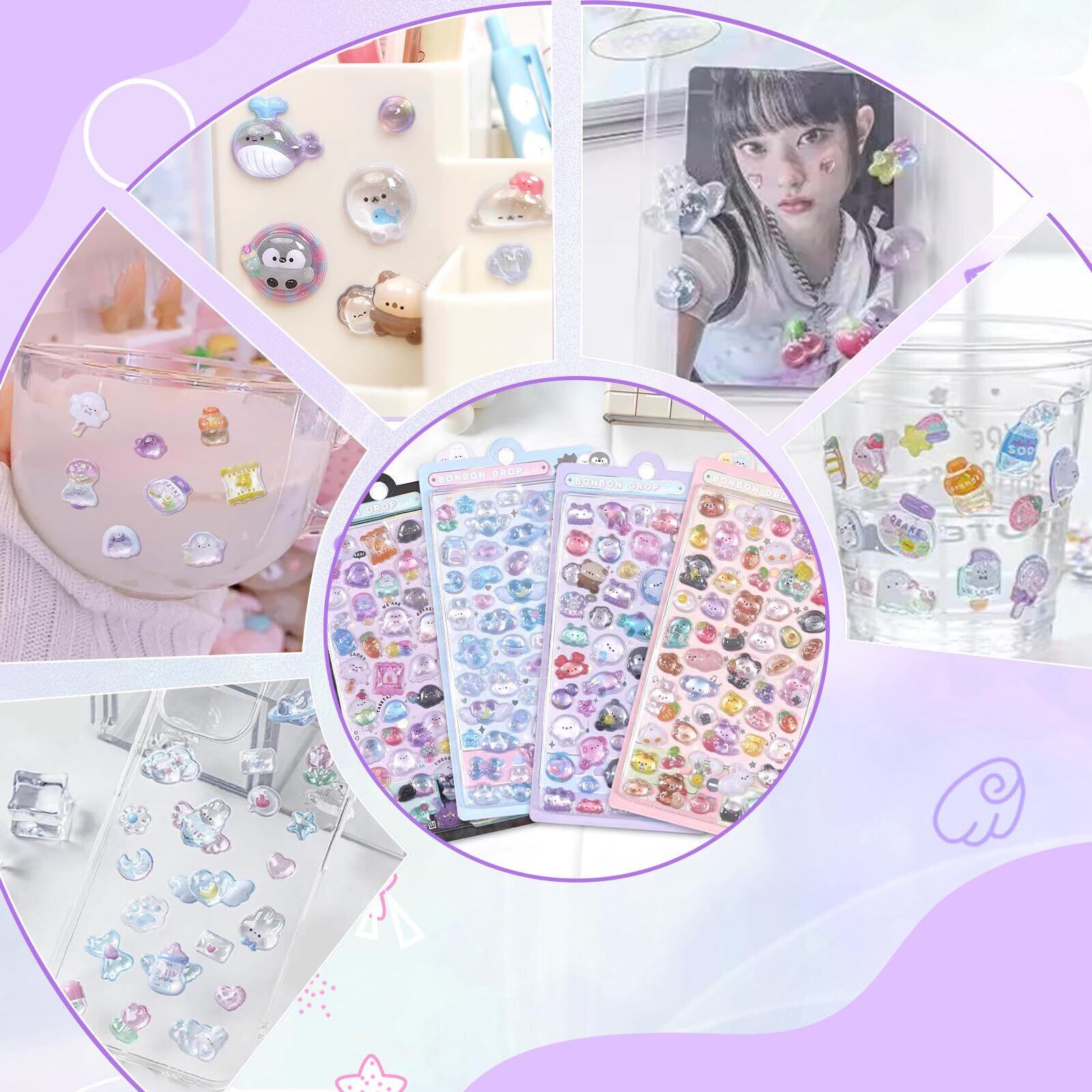【魅力デザイン】高品質のエポキシ樹脂を使用。まるで透明な水滴のような、独特の透明感と立体感が特徴です。シールの色合いをより鮮やかに、可愛らしく引き立てるだけでなく、あなたのDIY作品に立体感と遊び心をプラスします。