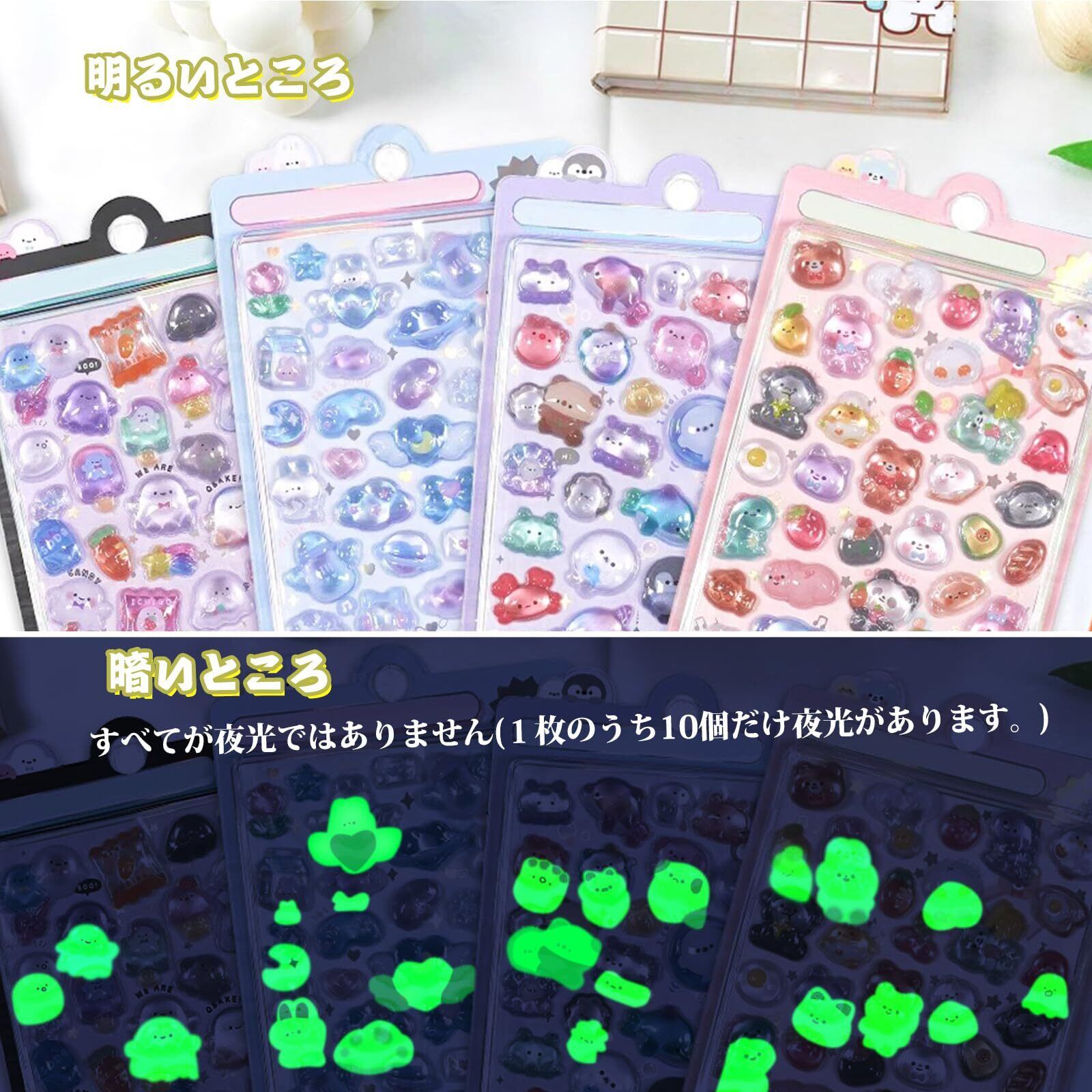 SUOKOMR シール かわいい エアーしーる ぷっくり 3D 夜光 立体 大量 4枚入り 8枚入り ごほうびシール デコシール 室内装飾 プレゼント 携帯電話飾り用手帳用 DIY用 日記帳用 貼り付け可能 手芸用品 贈り物 (4)
