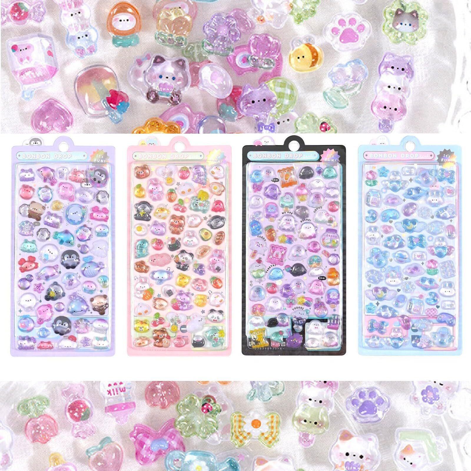 Yoiumicy 立体 シール 可愛い キラキラ デコシール ごほうびシール DIY用 女の子 スクラップブック デコレーション 耐久性PVC エポキシ樹脂 (4枚セット-A)