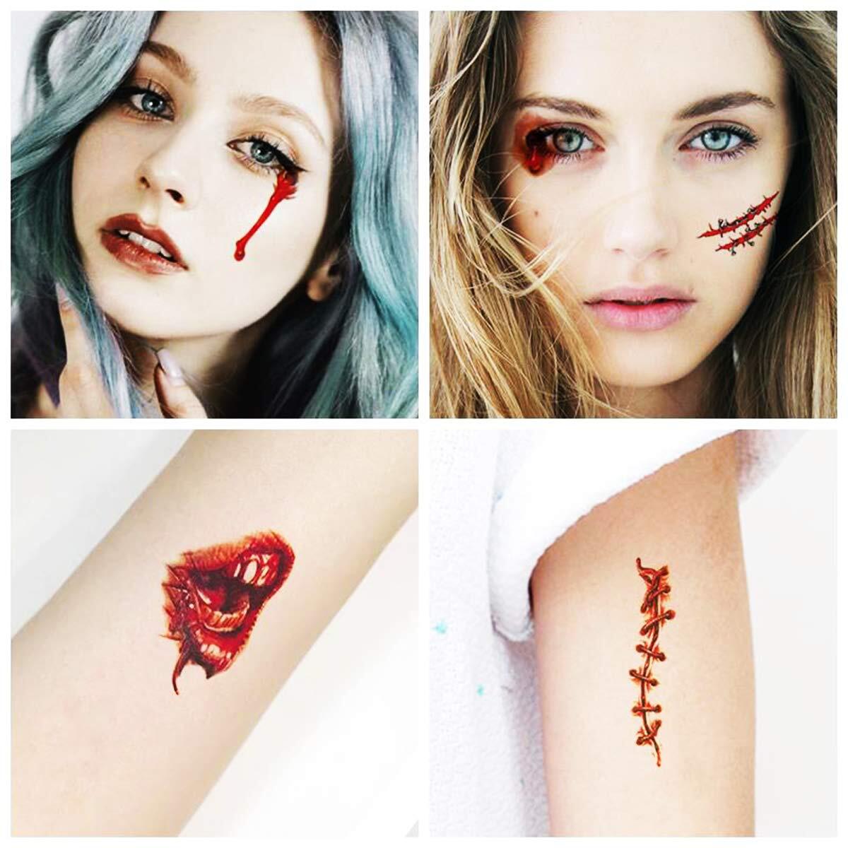 特殊メイク効果のある痛々しいタトゥーシールです。非常にリアルな傷跡、男性と女性でも怖がらせる面白いタトゥーシールです。フェイスやボディーなどのアートメイク、ハロウィーンパーティーに最適な小物です。