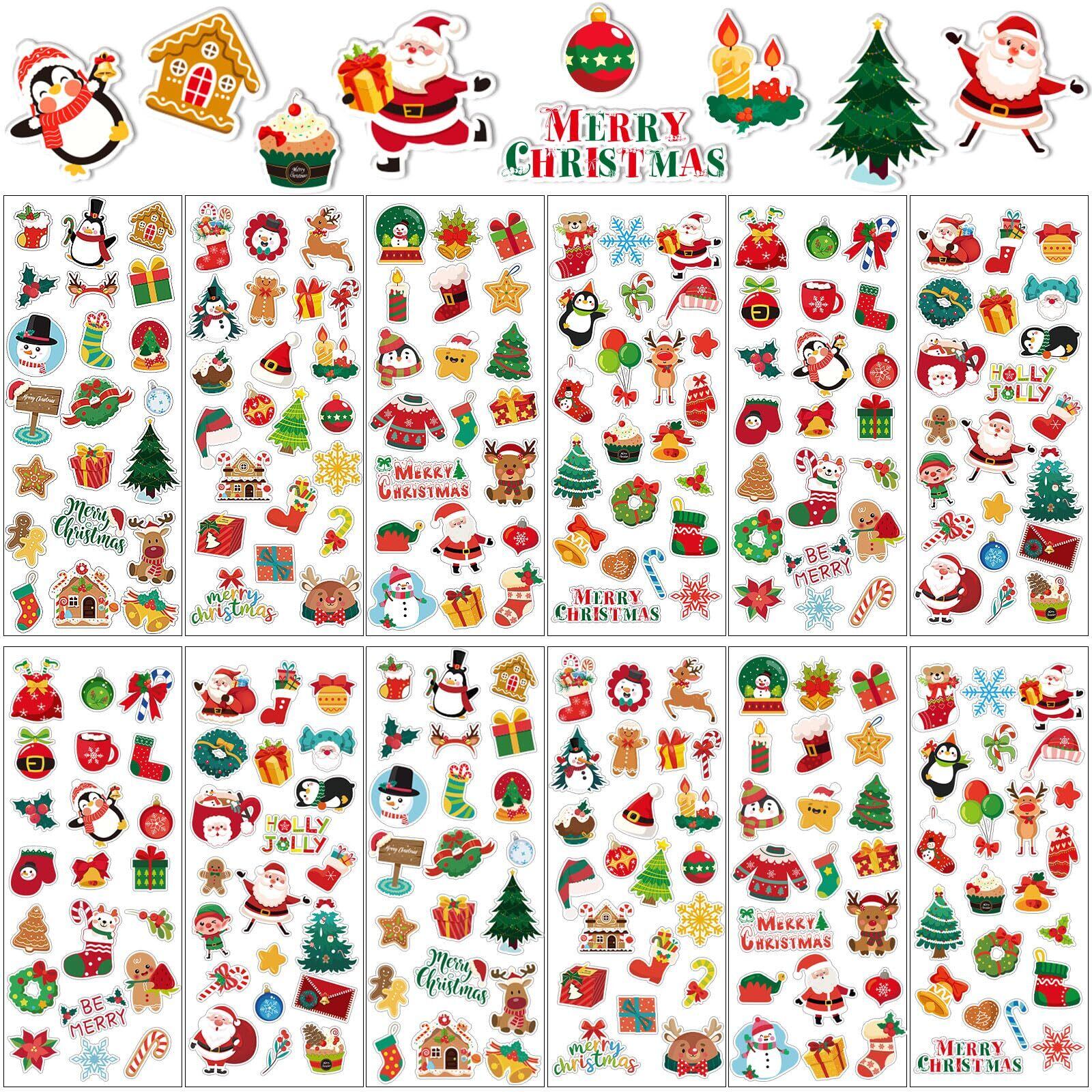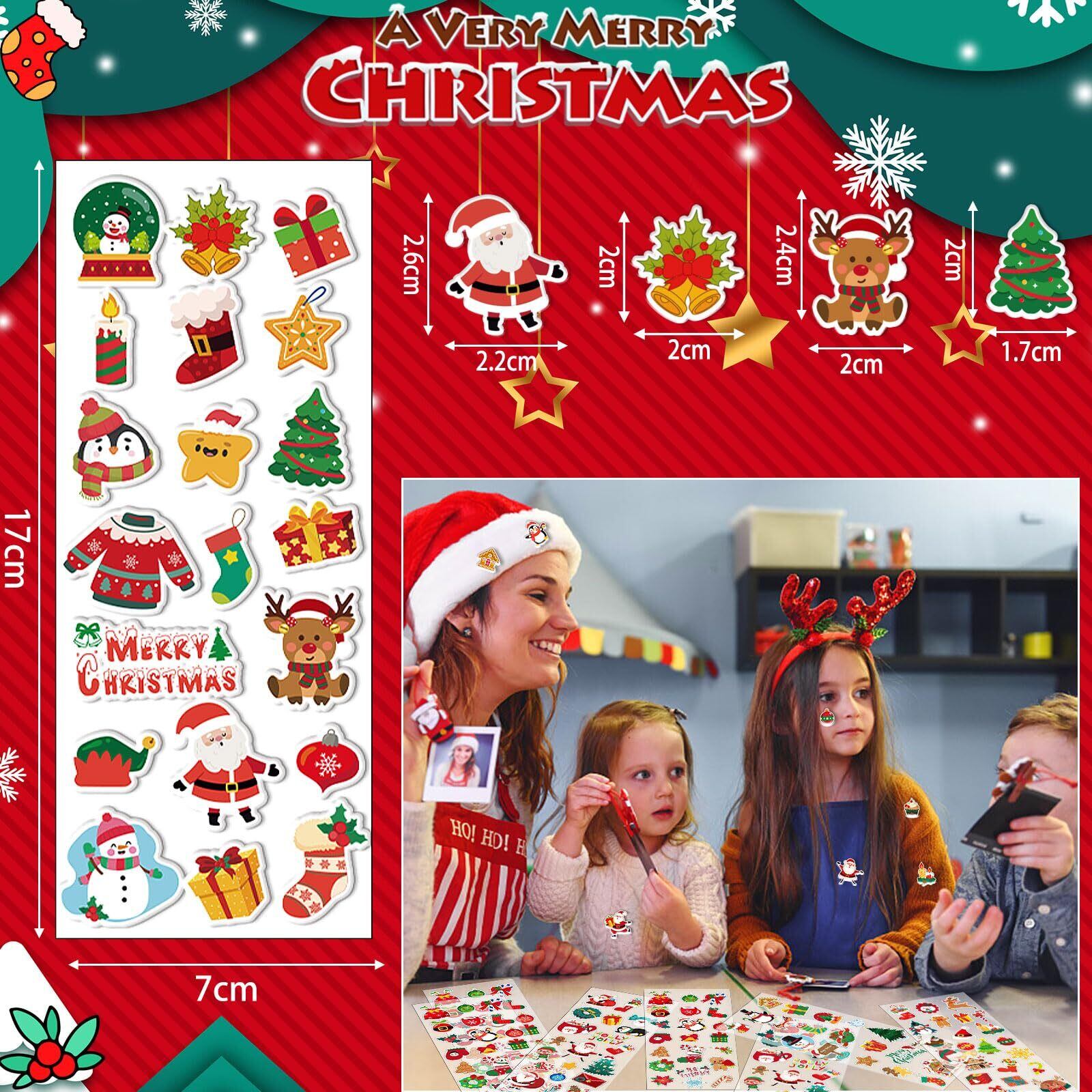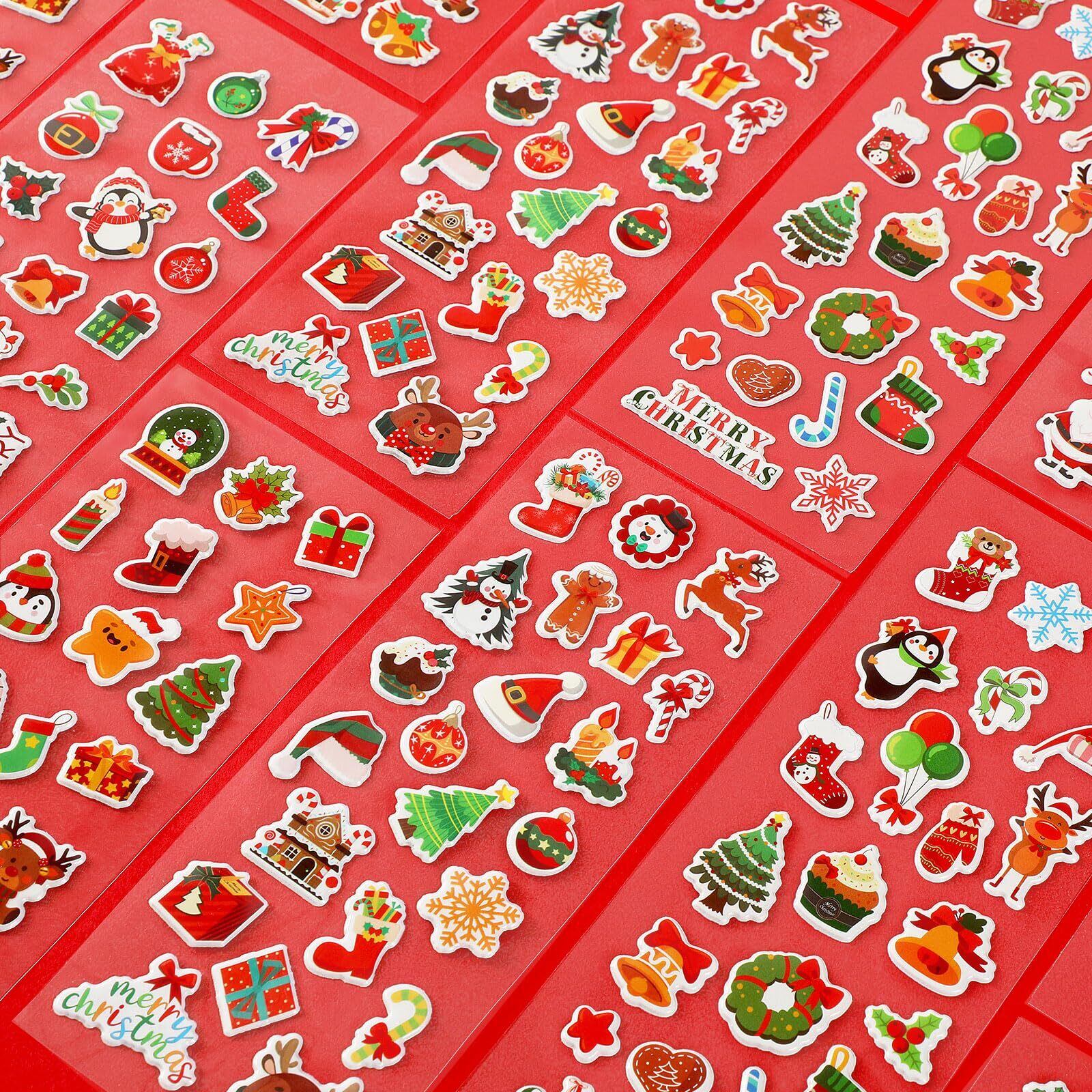 様々なデザイン:すべてクリスマスシールですが、デザインがそれぞれ違います。サンタ、雪だるま、トナカイ、雪の結晶、クリスマスツリーなど、様々なクリスマスアイテムを利用して、可愛いシールにデザインされました。漫画のスタイルと鮮やかなカラーで、子供に好まれやすいクリスマス 景品です