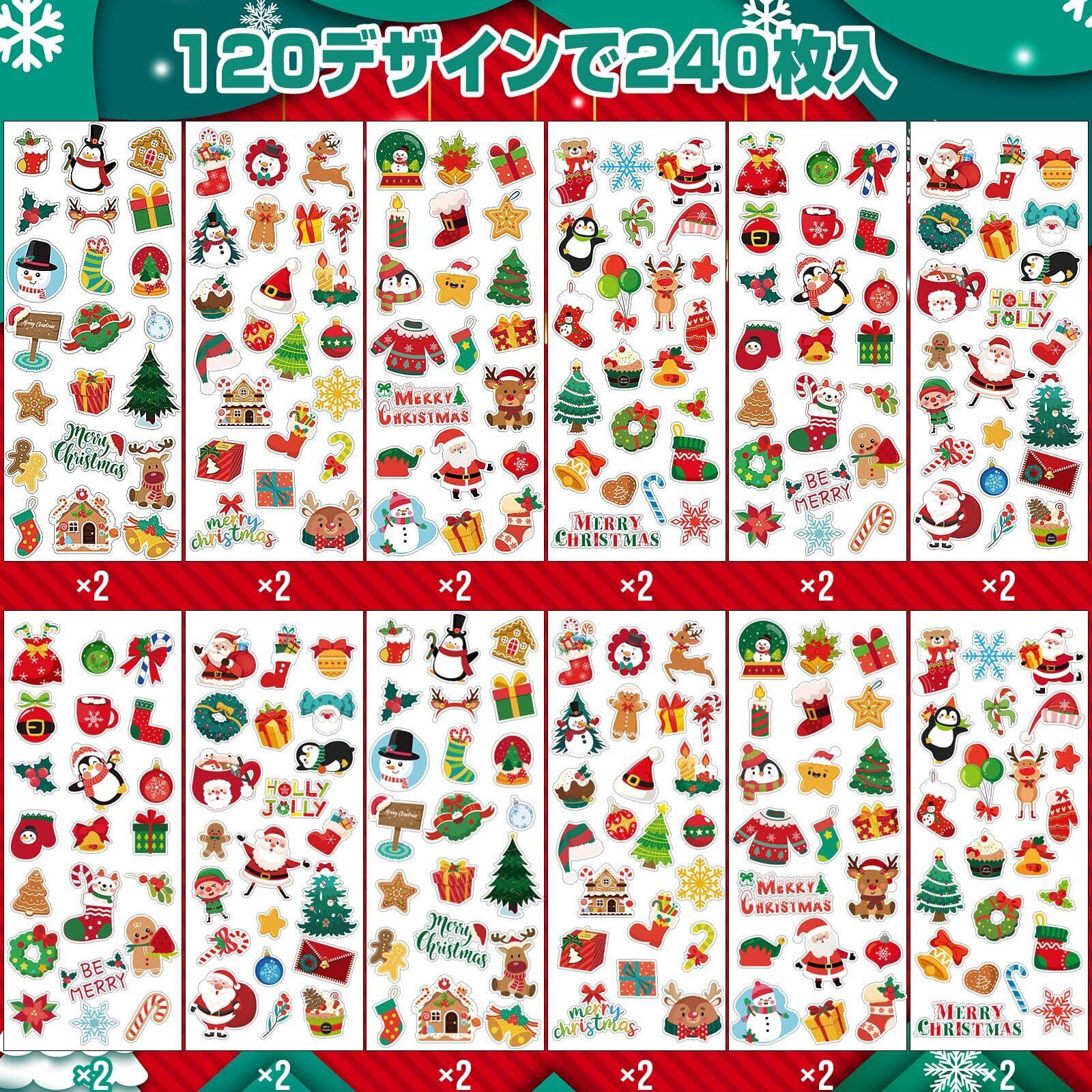 たくさん入る:パッケージには12シートのクリスマスシールが入っています。各シートに20枚、合計240枚の大量なセットです。豊富なパターンと多様なカラーがあり、クリスマスの雰囲気が溢れているクリスマス ステッカーです