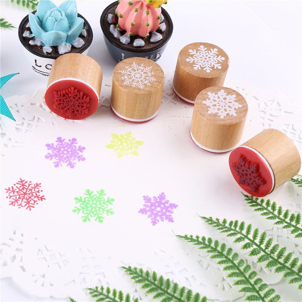 CCINEE ご褒美 スタンプ 雪の結晶 判子 印章 印鑑 雪花 木製 新年 happy new year 冬 winter snow クリスマス飾り 装飾 手帳 手紙用 6個入り