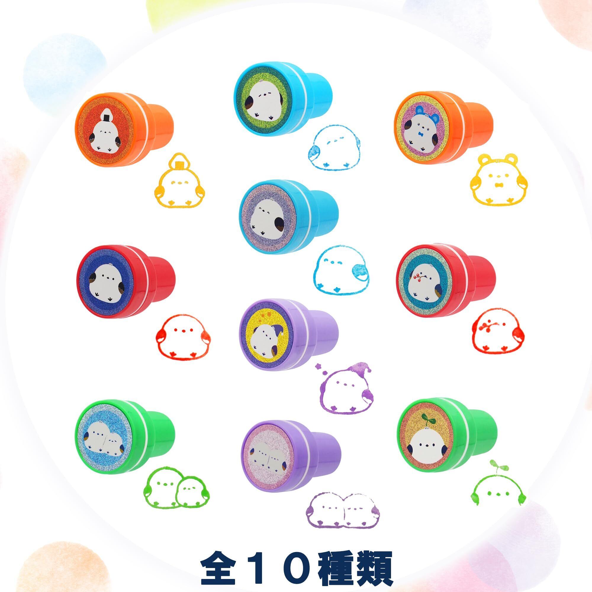 三洋堂 シマエナガ のカラフル 丸型 ミニスタンプ 全10種×各1個 計10個セットをお届けします。( 小容量 ご自宅 お誕生日会 お楽しみ会 向け)