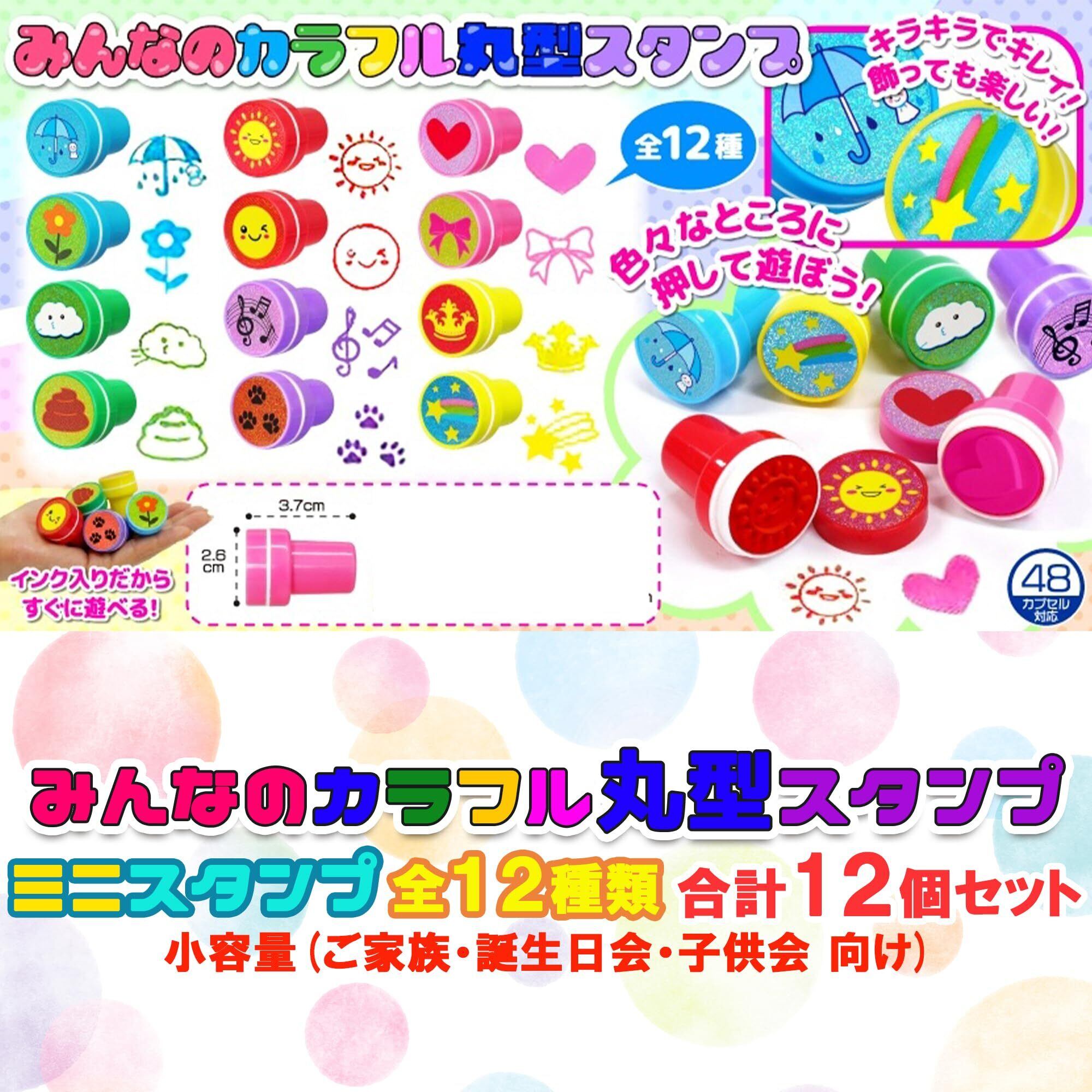 三洋堂 みんなのカラフル 丸型 ミニスタンプ 全12種セット 合計12個をお届けします。( 小容量 ご自宅 お誕生日会 お楽しみ会 向け)