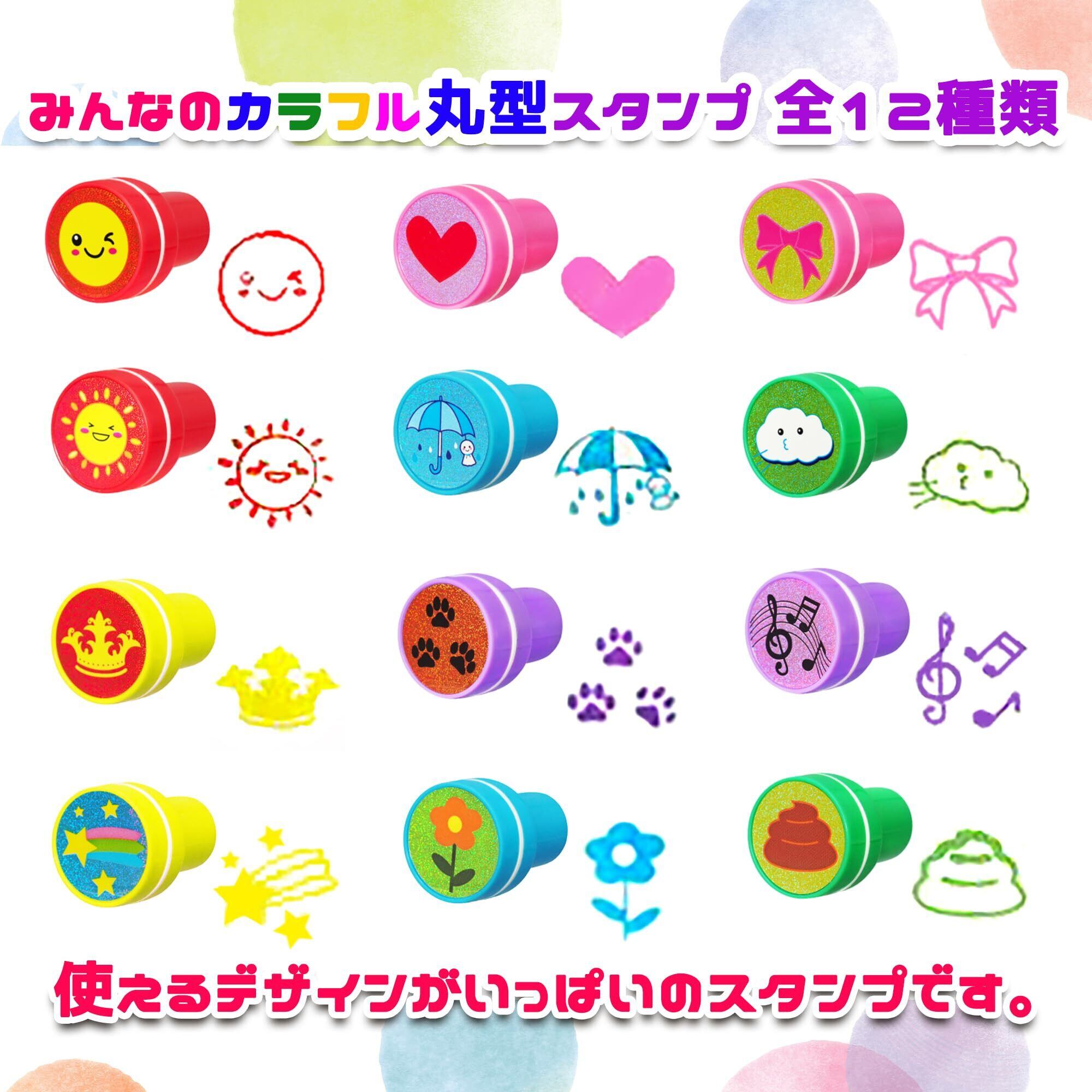 スタンプ みんなの カラフル 丸型 ミニスタンプ インク入り 全12種類 ×各1個 合計12個セット(小容量 ご家庭 お誕生日会 お楽しみ会 幼児施設 向け) インク入り スタンプ アニマル 動物園 キャラクター 文房具 文具 ファンシー 文具 おもちゃ 玩具 ハンコ はんこ チェック ホビーお絵描き ごほうび プレゼント 景品 お祭り 縁日 子供 女の子 男の子