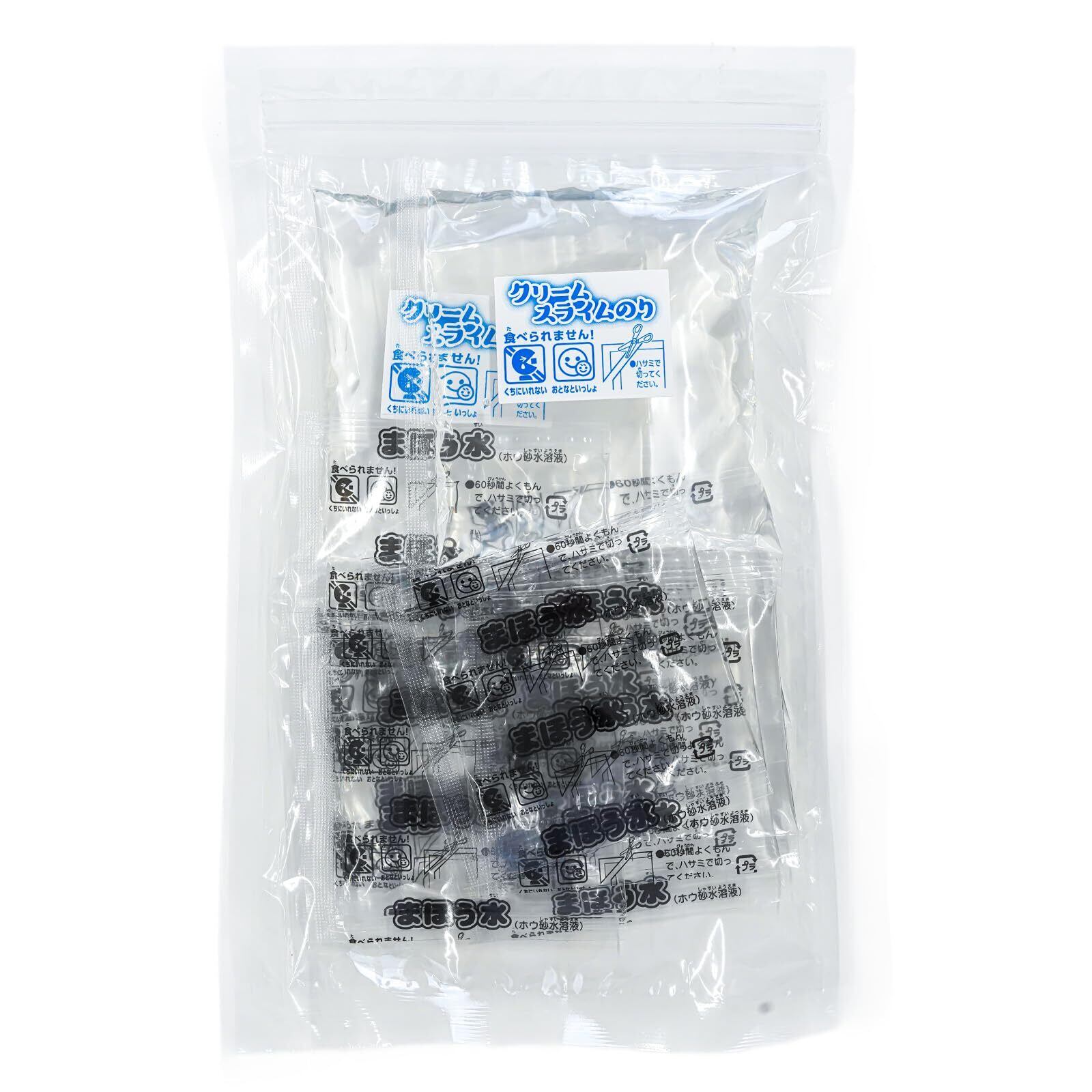 ふわふわクリームスライムのり×2個、まほう水(ホウ砂水溶液)×9個