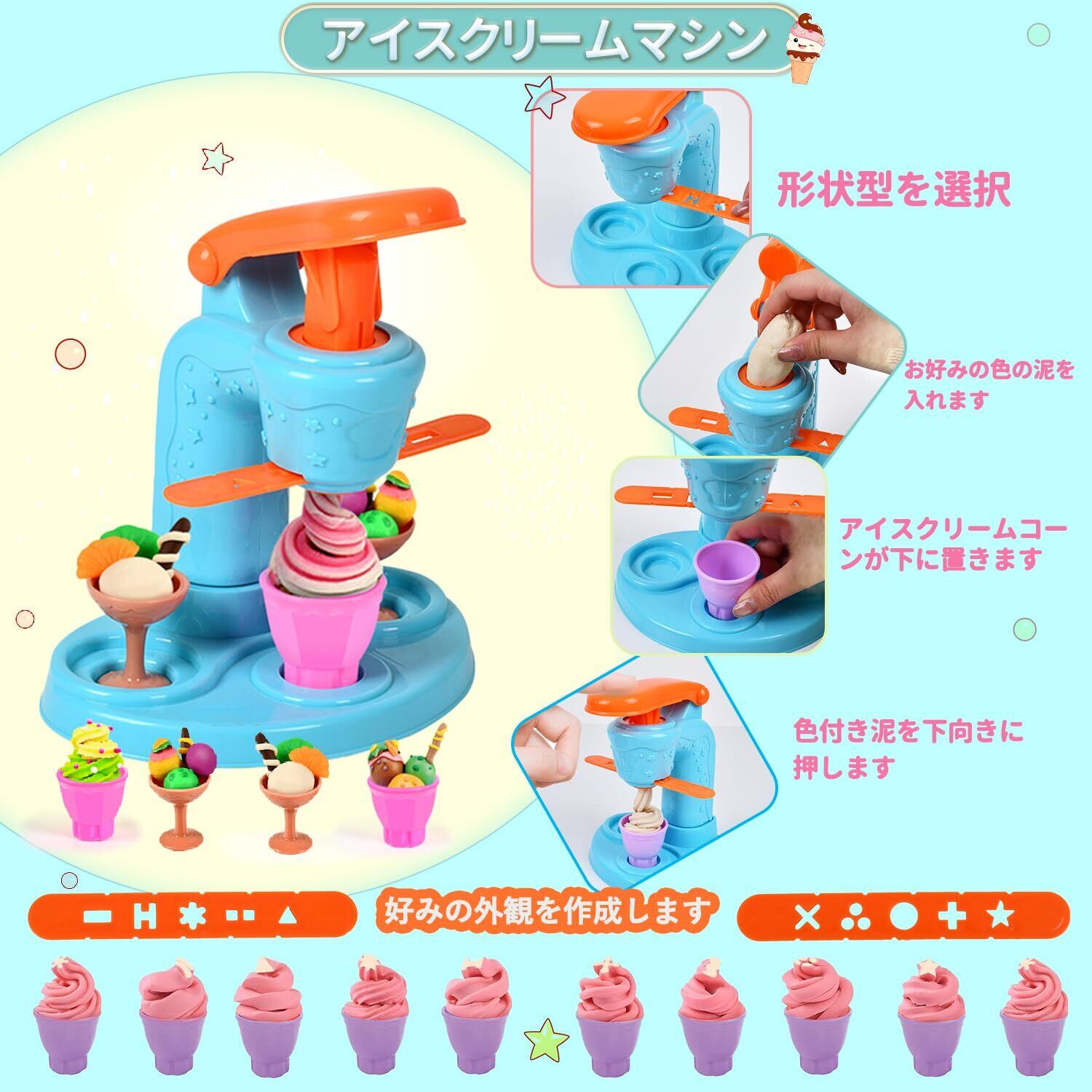お店屋さんごっこができる粘土遊びキットです。楽しい型や器、ソフトクリームマシンまで付いています。 突き出して成形、型押しして成形。粘土で楽しい食材作り。遊び方次第でカラフルで面白い粘土細工が楽しめます。きっとハマります。