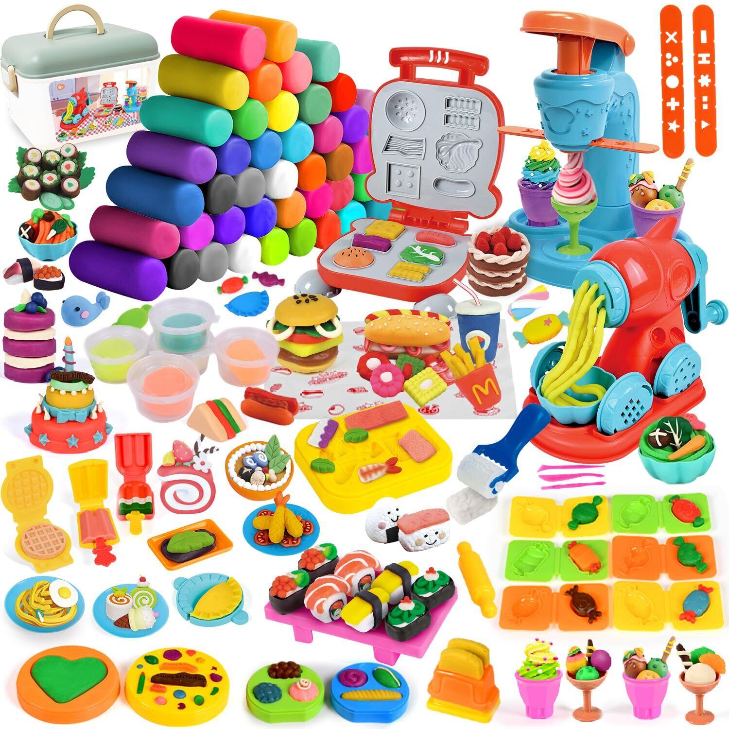 【プレゼントとして最適】 小麦粘土も大量なので、1人じゃなく数人で同時に遊べるぐらいは量があるので。豊富な色の 小麦粘土と、沢山の型等の付属品でボリューム感満点。たくさんのことができるパーツが入っています。友達や家族と制限時間を決めて、何かを作って、見せ合うのもとても楽しかったです。もらって喜ばない子はきっといないはず!