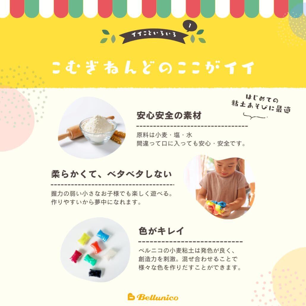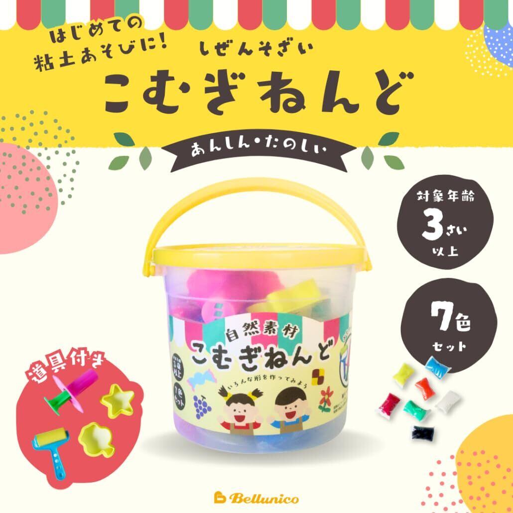 ベルニコ こむぎねんど 7色セット 各50g 道具と型付き 自然素材 ねんど遊び 安心 楽しい 3歳ごろ~ 脳の発達 色彩感覚 想像力 思考力 知育 ローラー 型抜き2個付き 幼稚園 小学校 入園 入学 プレゼント ギフト