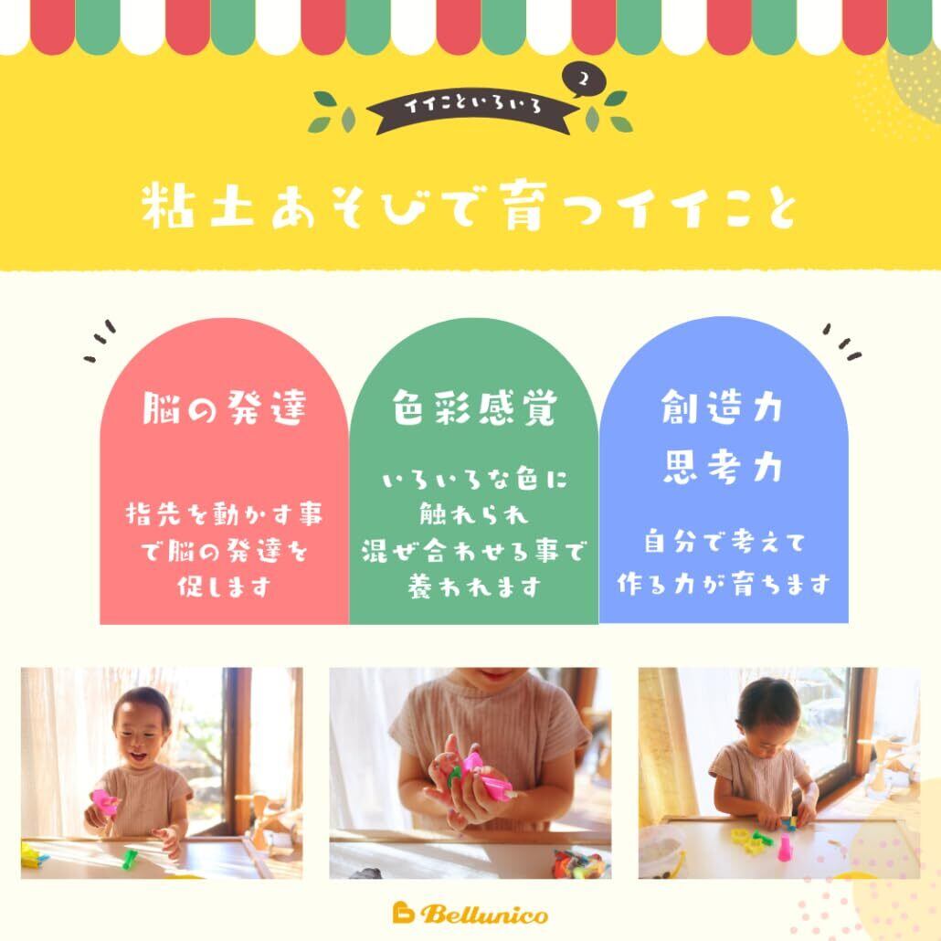 【柔らかくて、ベタベタしない】握力の弱い小さなお子様でも簡単にかたちを変えられるから夢中になれます。はじめての粘土遊びや指先のトレーニングにおすすめです。
