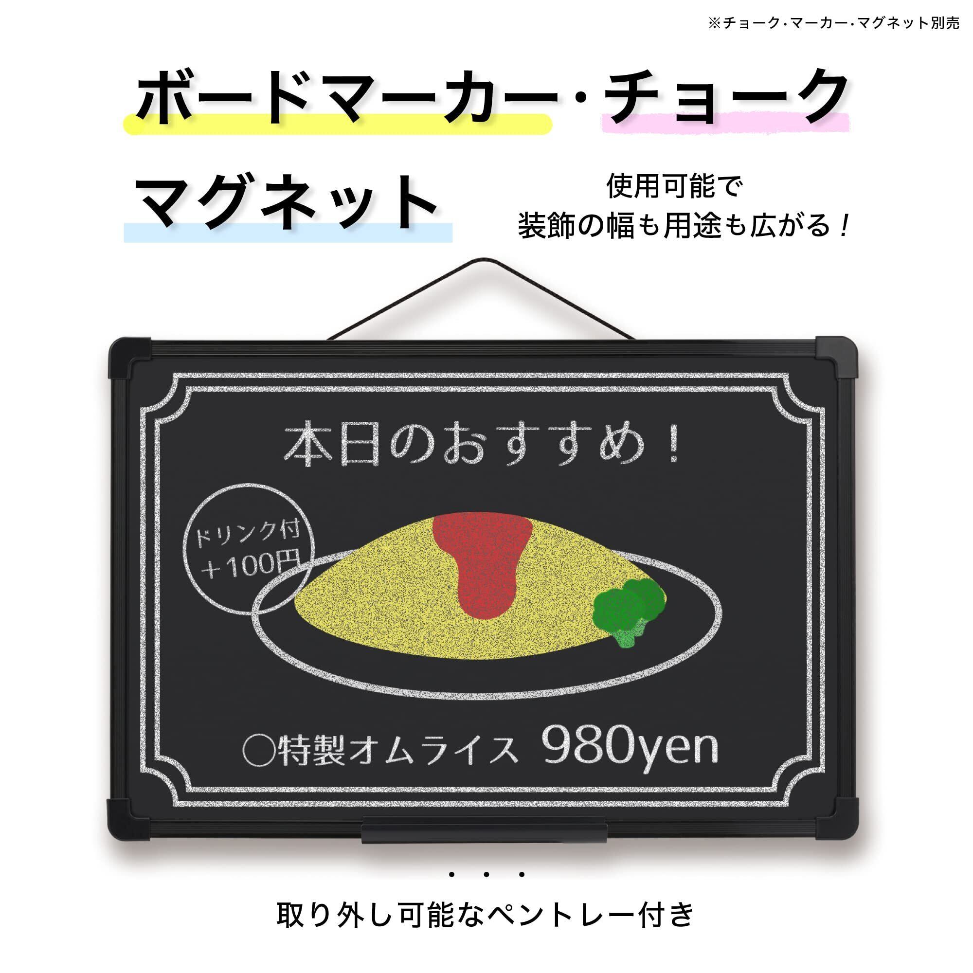 アスミックス(Asmix) アスカ プラ枠ブラックボード M BB038 黒板 チョーク マーカー マグネット トレー付き ブラック